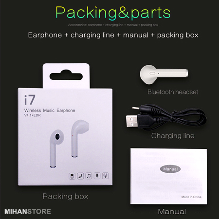 هندزفری طرح اپل مدل HBQ I7 یک هندزفری ظریف و بسیار زیباست که داخل گوش قرار گرفته و به صورت تکی عرضه می گردد. این دستگاه بی سیم از طریق بلوتوث نسخه 4 به دستگاه هوشمند شما وصل می شود و یکی از نقاط قوت آن این است که می تواند به طور همزمان به دو دستگاه وصل شود. با این ایرفون بی سیم میتوانید به تماس های تلفنی خود پاسخ داده و به راحتی موزیک پخش نمایید.از دیگر خصوصیات آن می توان به سیستم کاهش نویز، میکروفن  داخلی، وزن کم و زیبایی اشاره کرد.باتری لیتیوم پلیمری آن در حدود 80 دقیقه شارژ کامل شده و امکان مکالمه و پخش موزیک را برای شما فراهم می کند.