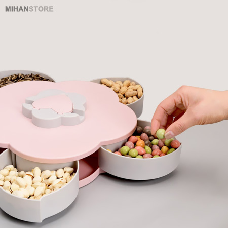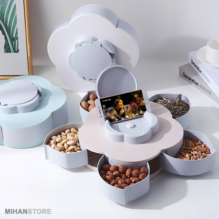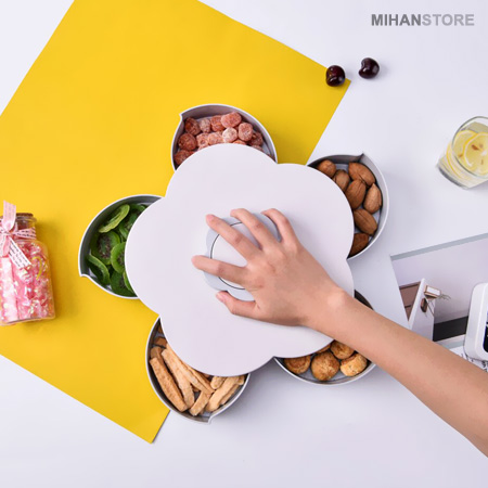 ویژگی خاص اردوخوری چرخشی طرح گل که آن را برای مشتری ها جذاب کرده چرخشی بودن ظرف و پنهان کردن محتوای تنقلات داخل ظرف می باشد. در نگاه اول شما ظرفی فانتزی طرح گل خواهید دید که با چرخاندن سوییچ روی آن به آرامی تنقلات پنهان شده بیرون آمده و جلوه ای جالب و جادویی به محصول میدهد. این اردوخوری جالب چرخشی همچنین دارای یک درب قلبی بازشو روی سوییچ چرخان میباشد که میتوانید با باز کردن آن شیارهایی برای نگهداری گوشی وجود دارد که میتوانید گوشیتان را به حالت ایستاده برای تماشای فیلم روی آن قرار دهید. می توانید از اردوخوری چرخشی طرح گل برای پذیرایی انواع مواد خوراکی در صبحانه و عصرانه استفاده کنید. بدلیل زیبایی انحصاری این ظروف و دوام و کیفیت مناسب آن شما می توانید از این ظروف جذاب را برای پذیرایی در هتل ها، رستوران، سلف سرویس ها و … نیز استفاده کنید.