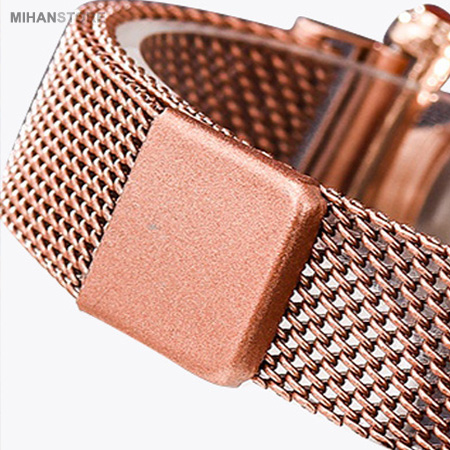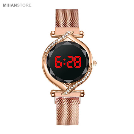 ساعت های  مچی صفحه لمسی نگین دار Luxury Lady مخصوص بانوان از جدید ترین ساعت های سال بوده و در این مدت کوتاه استقبال بی نظیری از این محصول در سراسر دنیا شده است. ساعت مچی صفحه لمسی نگین دار Luxury Lady  از یک رابط اهنربایی در بند ساعت بهره میبرد که باعث می شود بندها را به یکدیگر متصل کنند و ثابت نگه دارد. در واقع این رابط به جای قفل های سگکی قدیمی عمل میکند و مانع باز شدن ساعت می شود . استحکام قفل های مگنتی به قدری زیاد است که به راحتی از دست جدا نمی شوند و امکان باز شدن خود به خودی قفل ها تقریبا محال است. قفل ساعت مگنتی (آهنربایی) هست که باعث میشه برای هر سایز مچی مناسب باشه و نیاز به کوتاه یا بلند کردن بند توسط ساعت ساز نداشته باشد، جنس صفحه این ساعت تاچ مگنتی LED  از شیشه صیقل داده شده بوده و همانطور که قابل مشاهده است در اطراف به صورت منشور مانند و مثلثی در امده و از این رو زیبایی خاصی را هنگام بازتاب نور ایجاد می کند. ساعتها قابلیت لمسی دارند. به طوری که با لمس صفحه led ساعت، ساعت و همچنین تاریخ و .. با اعداد قرمز نمایش داده می شود. قاب ساعت تاچ مگنتی نیز همانند بند ها از جنس فلز هست و با نگین های براق زیبایی ساعت را دو چندان کردند. این محصول دارای جعبه طرح چوب می باشد و همچنین در رنگبندی متفاوت عرضه شده است که شما هنگام ثبت سفارش در قسمت پیام سبد خرید می توانید رنگ مورد نظر را ذکر کنید.