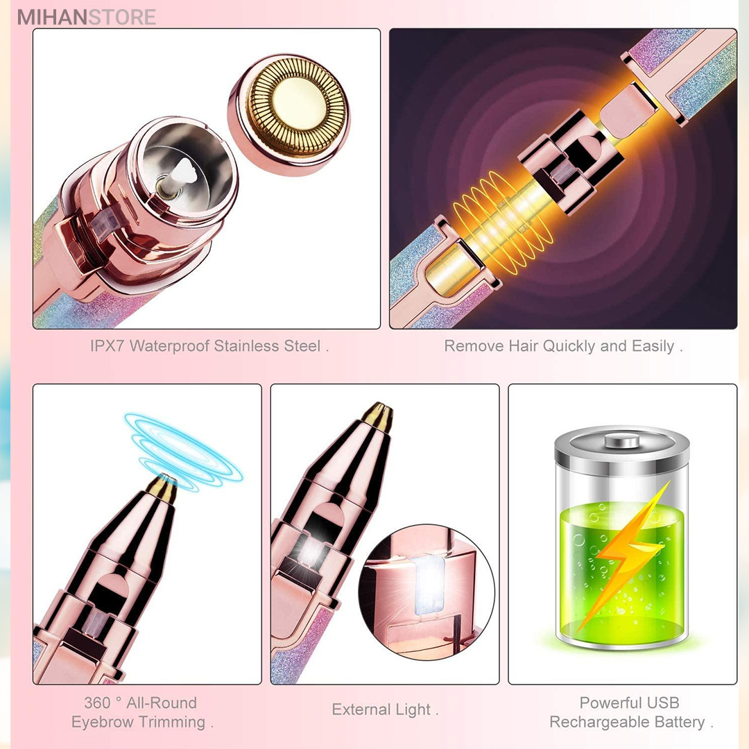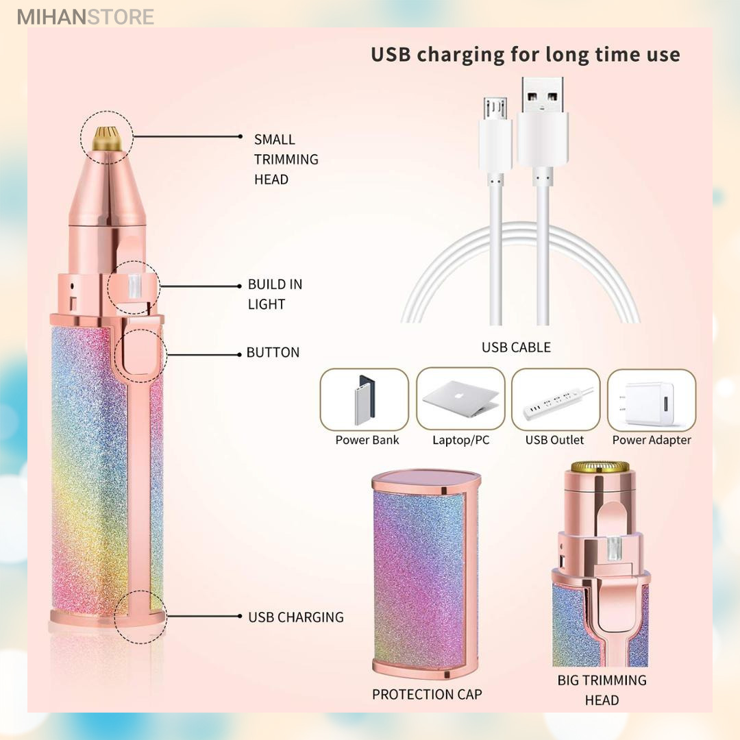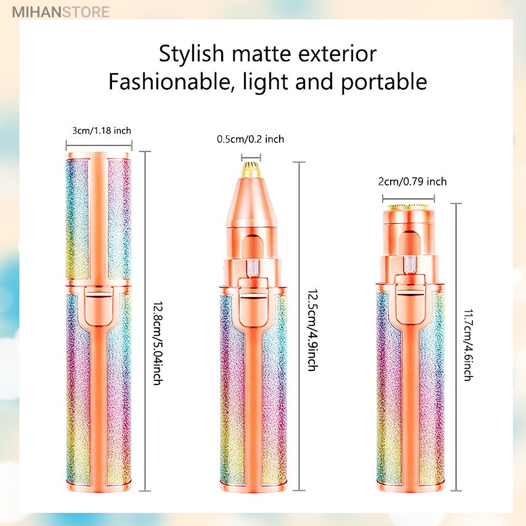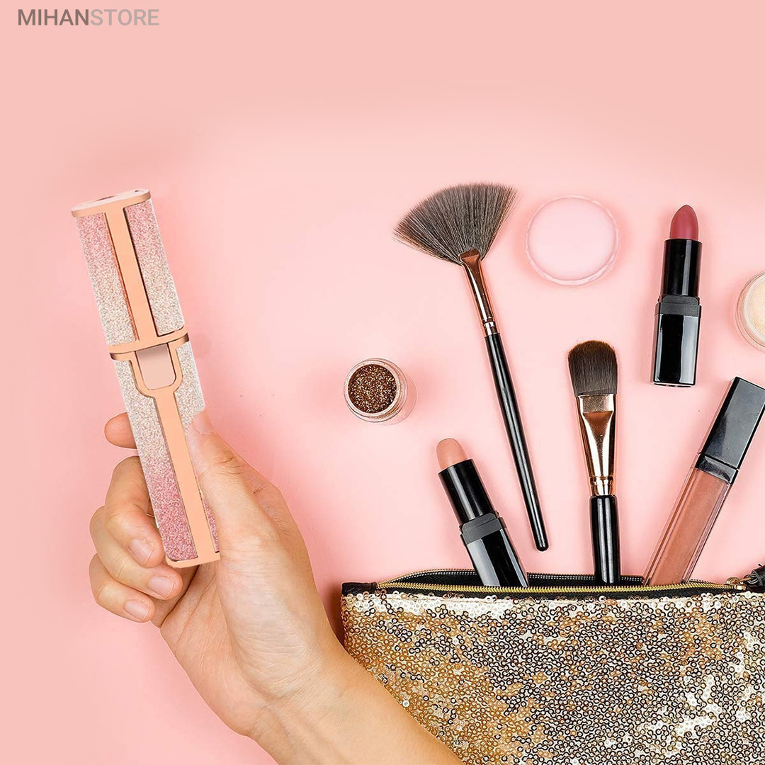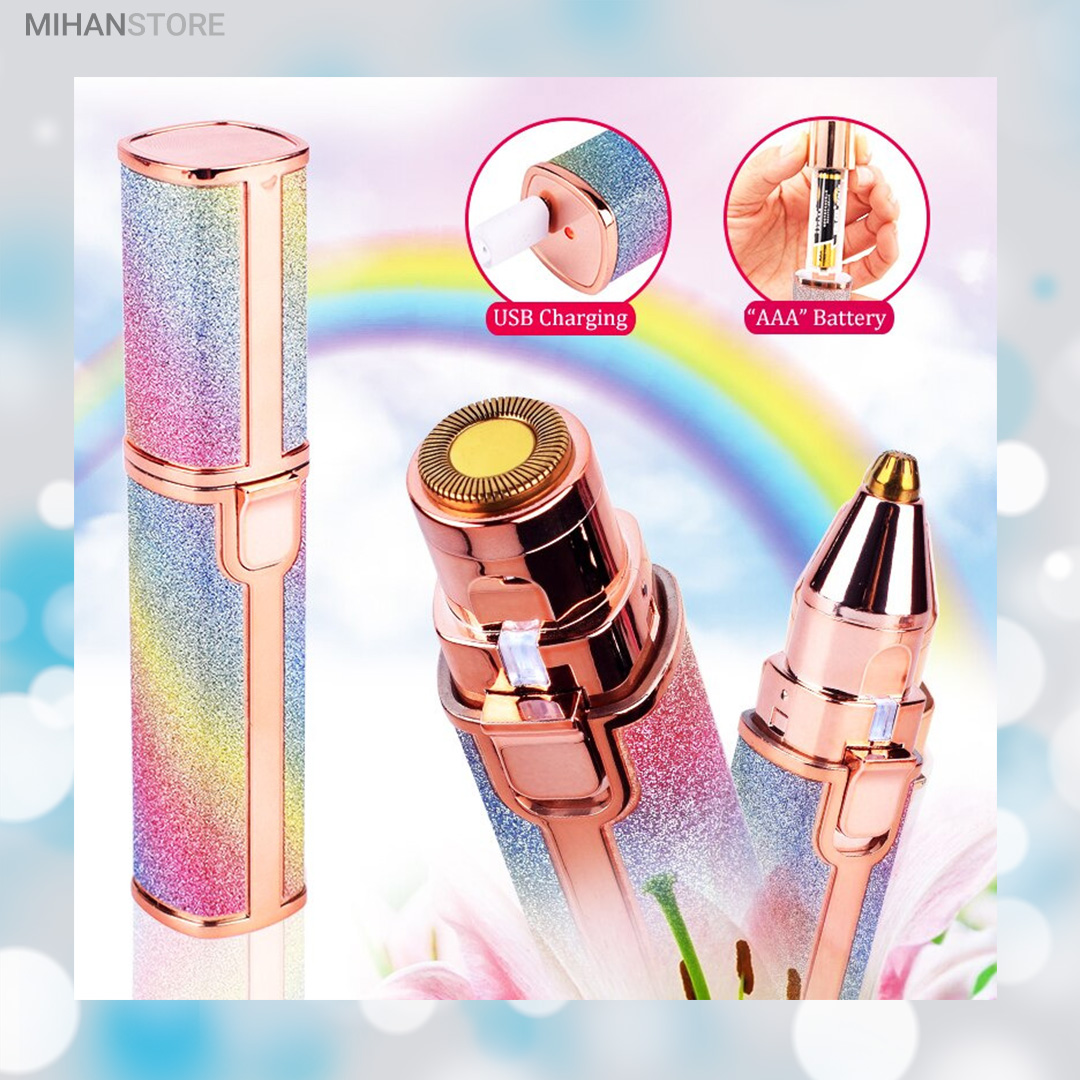 دستگاه اصلاح صورت و بدن ماتیکی دو کاره شارژی رنگی یک محصول فوق العاده با کیفیت و با کارایی های بالا می باشد که توسط آن که اندازه بسیار مناسبی شبیه یک رژ لب معمولی دارد می توانید هم کار اصلاح موهای زائد نقاط حساس صورت و بدن را بدون درد انجام دهید و هم توسط سری موزن آن با دقت بسیار بالا ، ابروها و موهای داخل بینی و روی گوش ها را کاملا تمیز نمایید. در واقع شما با خرید یک محصول چند محصول پرکاربرد را همیشه همراه خود خواهید داشت و چی از این بهتر؟ رنگ فوق العاده زیبای آن باعث می شود در همان نگاه اول عاشقش شوید و از داشتن آن نهایت لذت را خواهید داشت. شارژی بودن و عدم نیاز به تهیه و تعویض باتری از دیگر نکات مثبت این محصول می باشد که توسط کابل های موبایل های معمولی اندرویدی نیز می توانید در همه جا آن را شارژ نموده و استفاده نمایید.این دستگاه شیور زنانه دوکاره دارای دو سری مختلف می باشد که سری اول همان سری معروف دستگاه موزن ماتیکی می باشد که برای از بین بردن موهای زائد صورت و بدن استفاده می شود و سری دوم آن ، موزن بوده و برای اصلاح ابرو و از بردن موهای زائد ابرو و بینی و گوش قابل استفاده می باشد ، سری ها به راحتی تعویض شده و بعد از جدا کردن از دستگاه می توانید آن ها را با آب شستشو دهید. برای تعویض سری ها کافی است کمی آن ها را چرخانده و به سمت بیرون بکشید تا جدا شوند و برای جا انداختن دوباره آن ها نیز کافی است سری را در جای مشخص قرار داده و کمی بچرخانید، بسیار ساده است. این محصول دارای کیفیت درجه یک می باشد و برای هدیه دادن بسیار بسیار گزینه مناسب و ایده آلی است زیرا هر خانمی به دلیل رنگ خیره کننده اش از دیدن آن شگفت زده می شود و در عین حال بسیار کارآمد و مفید می باشد و آن را تبدیل به هدیه ای دوست داشتنی و به یاد ماندنی تبدیل می کند که همیشه آن را در کیف خود به همراه خواهد داشت. برای شارژ کردن این محصول کافی است توسط کابل شارژ درون جعبه و یا هر کابل شارژ میکرو یو اس بی موبایل های اندرویدی آن را توسط شارژرهای موبایل یا یو اس بی کامپیوتر و یا حتی پاوربانک شارژ نمایید و بعد از هر بار فول شارژ شدن می توانید برای مدت زیادی از آن استفاده نمایید. در این محصول یک عدد چراغ نیز وجود دارد که باعث می شود خیلی بهتر بتوانید موهای زائد را مشاده نموده و از شر آنها خلاص شوید این چراغ به اندازه کافی پر نور می باشد.