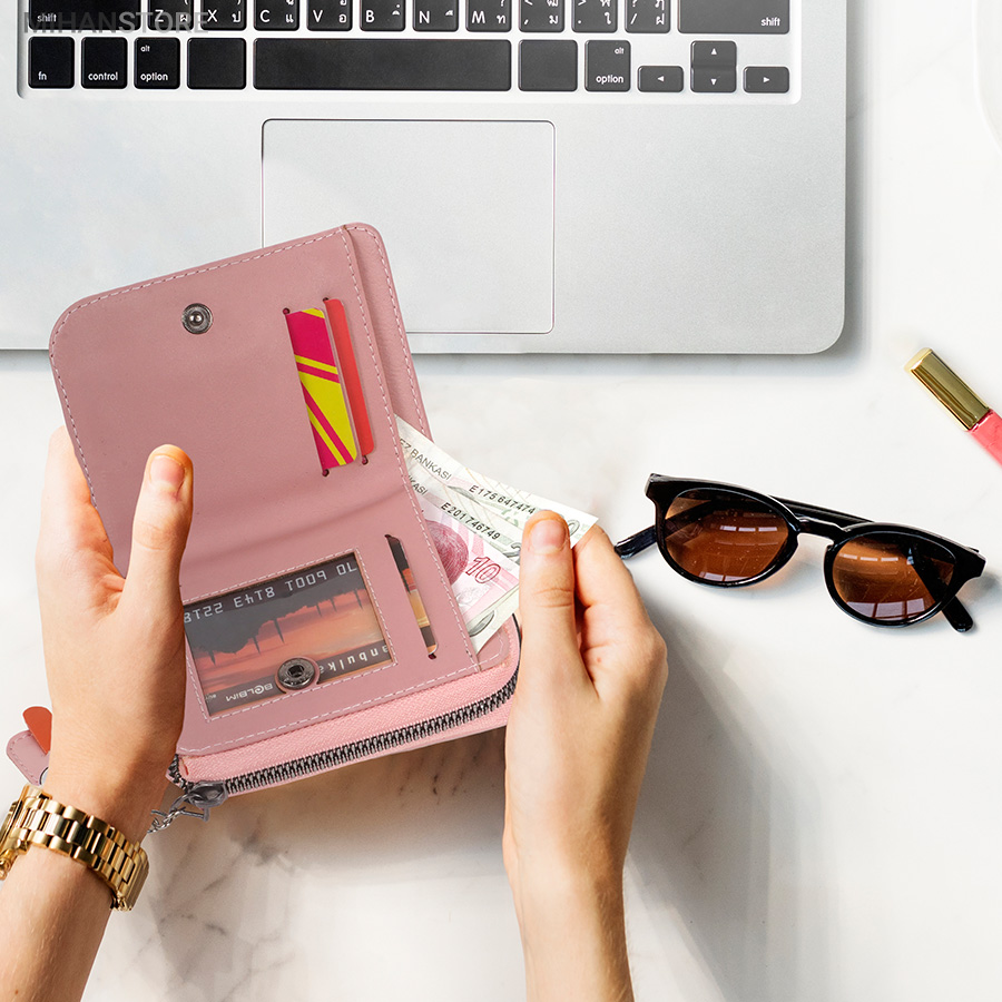 کیف پول زنانه فانتزی Nina برخلاف اکثر کیف های موجود در بازار در تولید آن از زیپ فلزی و سرزیپ مرغوب استفاده شده است. یراق به کار گرفته شده در این محصول رنگ ثابت میباشد و به مرور زمان دچار تغییر رنگ نمیشود. جنس این کیف از چرم مصنوعی مرغوب است که با دور دوزی تمیز جلوه ای زیبا به استایل شما می بخشد. این کیف با ساختارش به شما در حمل و نظم بخشیدن به اکسسوری های داخل کیف تان کمک می کند. همچنین بسیار خوش دست و سبک است و طراحی مناسب این محصول موجب دسترسی آسان شما به وسایل تان در لحظه میشود. این محصول نسبت به حجم کوچکش، محفظه نسبتا جادار کاربردی دارد و دارای جای چندین کارت عابربانک، پول، محفظه زیپ دار مخصوص هندزفری یا ... می باشد. شما میتوانید این کیف را درون جیب خود نیز بگذارید و همواره آن را نزد خود داشته باشید، این محصول دارای یک آویز بسیار شیک و فانتزی نیز می باشد که زیبایی کیف را دو چندان کرده است. کیف پول زنانه فانتزی Nina در رنگبندی متنوع و شیک عرضه شده است که هنگام ثبت سفارش می توانید رنگ مورد نظر را در سبد خرید انتخاب کنید.