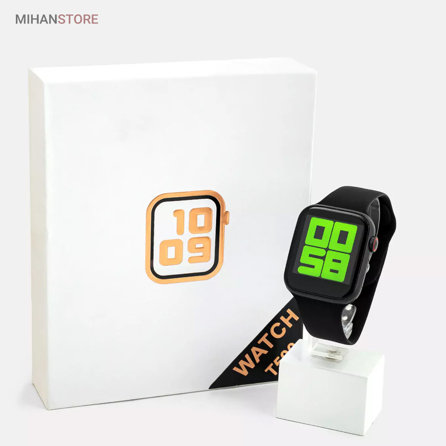 ساعت هوشمند مدل T500 یکی از بهترین مدل های موجود که به نسخه اصلی شباهت زیادی دارد میباشد.  ساعت هوشمند مدل T500 دارای طراحی بدنه بسیار زیبا و ساده ای است که فرم مستطیلی دارد همراه با بند های سیلیکون که جذابیت ساعت را چندین برابر کرده است این ساعت کاملا لمسی میباشد که تمام صفحه نیست و حاشیه دارد.  از مزیت های قابل ذکر این محصول میتوانیم با قابلیت اتصال به بلوتوث جهت همسان سازی با گوشی اشاره کنیم،ساعت هوشمند مدل T500و با وجود دارا بودن حسگر شتاب سنج،قابلیت رد تماس،تنظیم هشدار روزانه،ژیروسکوپ و شمارنده ضربان قلب،تعیین اهداف ورزشی و..جذابیت ساعت را بیشتر کرده است.  همچنین این ساعت به تمامی دستگاه های اندرویدی وIos متصل خواهد شد،این گجت هوشمند توسط یک کابل مغناطیسی شارژ میشود.