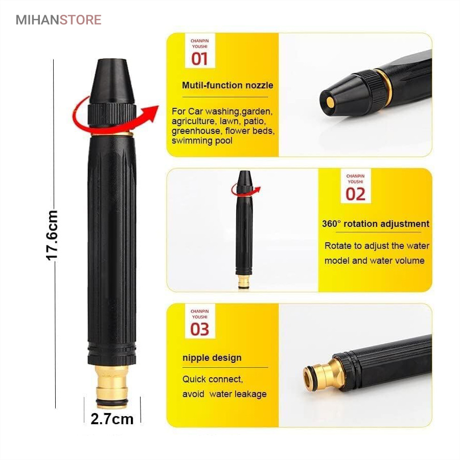 شما می توانید با استفاده از این نازل کارواش دستی را به کمک یک بست به شلنگ متصل کرده و از نتیجه آن لذت ببرید. معمولا از این کارواش دستی برای آبیاری باغ، شستن ماشین ها، چمن زار، ایوان، چمن ها، گل‌ها و تمیز کردن حمام، آشپزخانه، بالکن، راهرو، فرش و خیلی موارد دیگر استفاده می شود.برای ساخت کارواش خانگی jet از آلیاژ آلومینیوم در بدنه آن استفاده شده است که برای جلوگیری از پوسیدگی و افزایش مقاومت در برابر آب بسیار با کیفیت می باشد. همچنین دارای مقاومت بالا برای جلوگیری از نشت آب، مقاوم در برابر زنگ زدگی حتی در استفاده طولانی مدت می باشد که بسیار بادوام تر از محصولات مشابه خود می باشد.حالت های آب متعددی برای رفع هر نیاز در شست و شوی آبی وجود دارد، مانند ماشین، پیاده رو، پاسیو، ناودان، عرشه، خانه و هر مکانی. انواع حالت ها به صورت کاملا انتخابی و فقط با پیچاندن بخش ابتدایی این نازل، که حالت پیچی دارد ، می توانید این حالت ها را تغییر دهید و استفاده کنید.با قابلیت سری پیچی قابل تنظیم می توانید جریان آب انعطاف پذیر و قابل تنظیم در این کارواش داشته باشید. به عبارت دیگر می توانید از حالت حمام، حالت آبپاش و حالت جت و چندین حالت دیگر استفاده کرده و به کمک نازل قابل تنظیم که در ابتدای کارواش قرار داده شده است، لکه های مختلف را شستشو داده و در مصرف آب صرفه جویی کند.