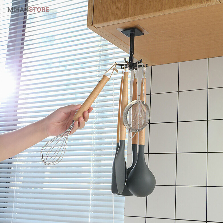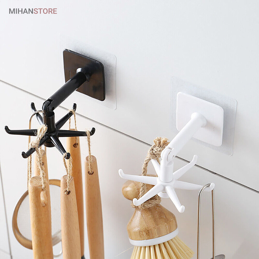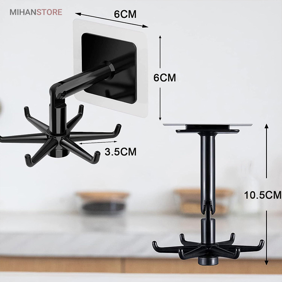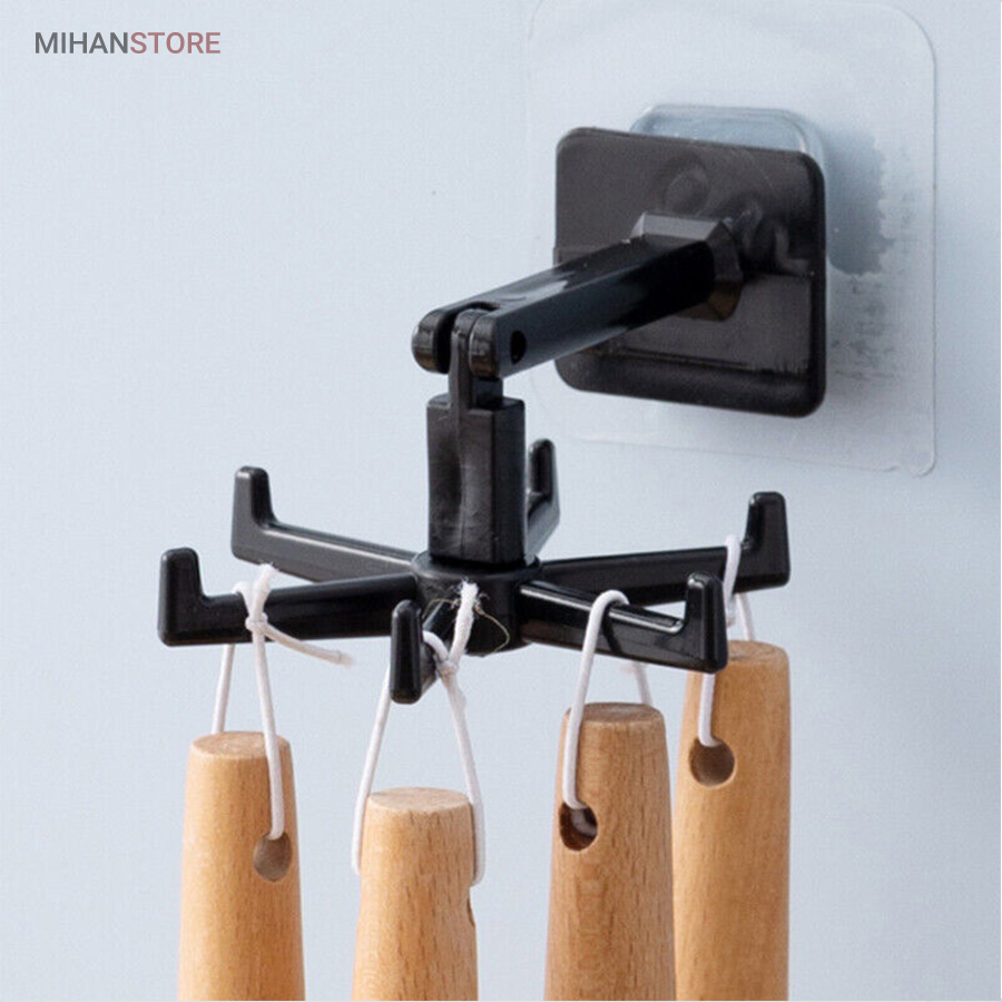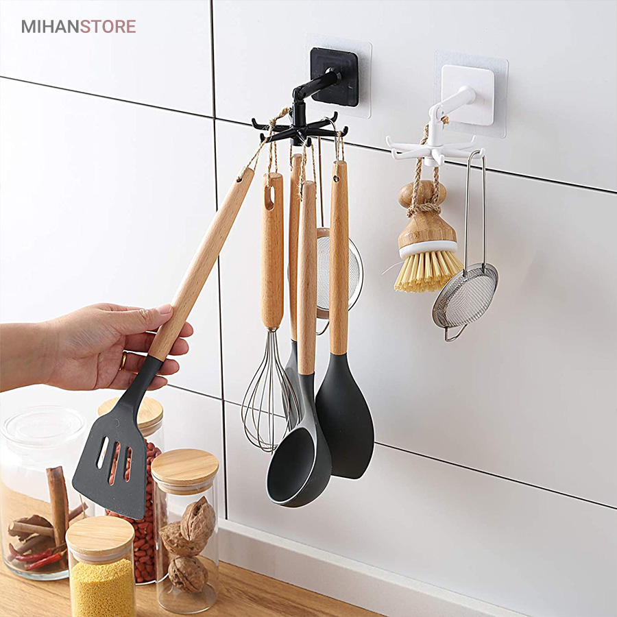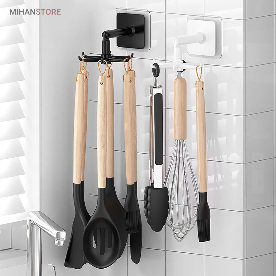 آویز گردان همه کاره با پایه چرخشی ، محصولی است کاربردی که تولید شده از جنس پلاستیک مقاوم و با کیفیت می باشد . این پایه که با استفاده از چسب قوی تعبیه شده در قسمت زیرین خود به دیوار متصل می شود دارای بازویی با قابلیت خم شدن در زاویه 180 درجه است ، بازویی که در انتهای سری خود یک آویز 6 شاخه دارد ، آویزی که بر روی هر یک از شاخه های آن می توانید لوازم و ابزاری نظیر کفگیر و ملاقه آویزان کنید تا در موقع نیاز به سادگی در دسترس شما باشند . قابلیت چرخش 360 درجه برای ساده تر شدن دسترسی به لوازم دیگر خصوصیت این آویز به شمار می رود که علاوه بر آشپزخانه می توانید در قسمت های مختلف دیگر نظیر اتاق ، داخل کمد و … برای آویزان کردن لوازم و وسایل مختلفی همانند کراوات ، کش مو و … استفاده کنید . با توجه به قابلیت خم شوندگی بازو می توانید علاوه بر دیوار ، آویز دیواری کفگیر و ملاقه را به زیر کابینت و یا سقف کمد نیز نصب و از آن استفاده کنید .
