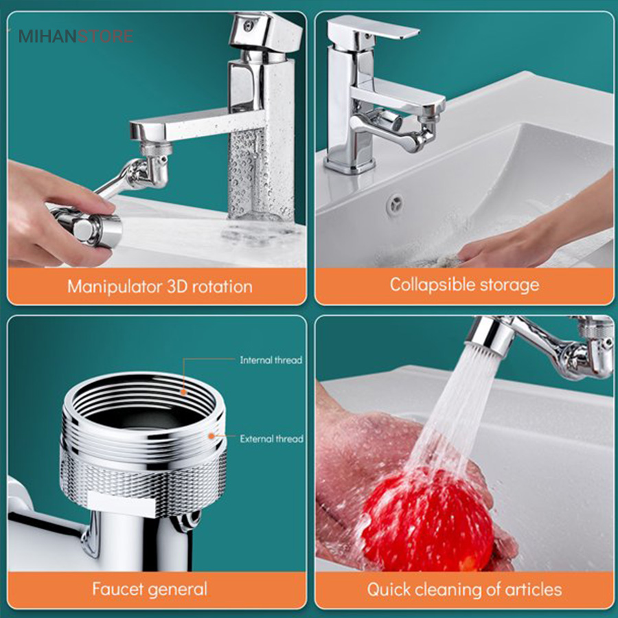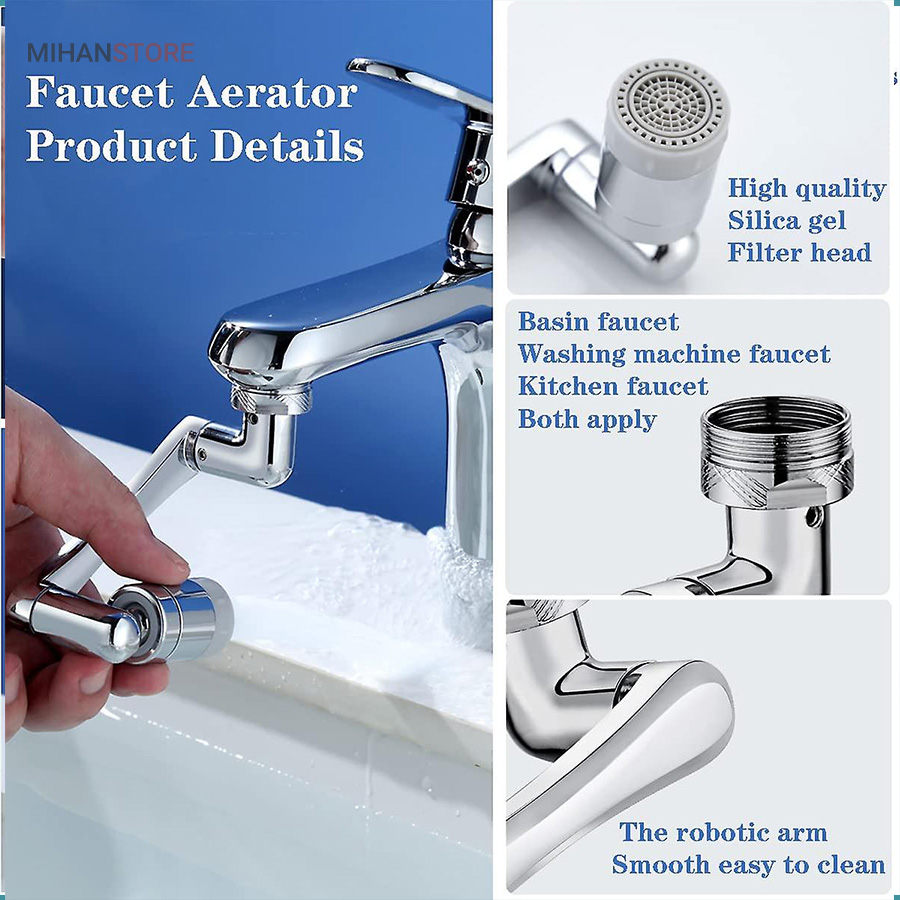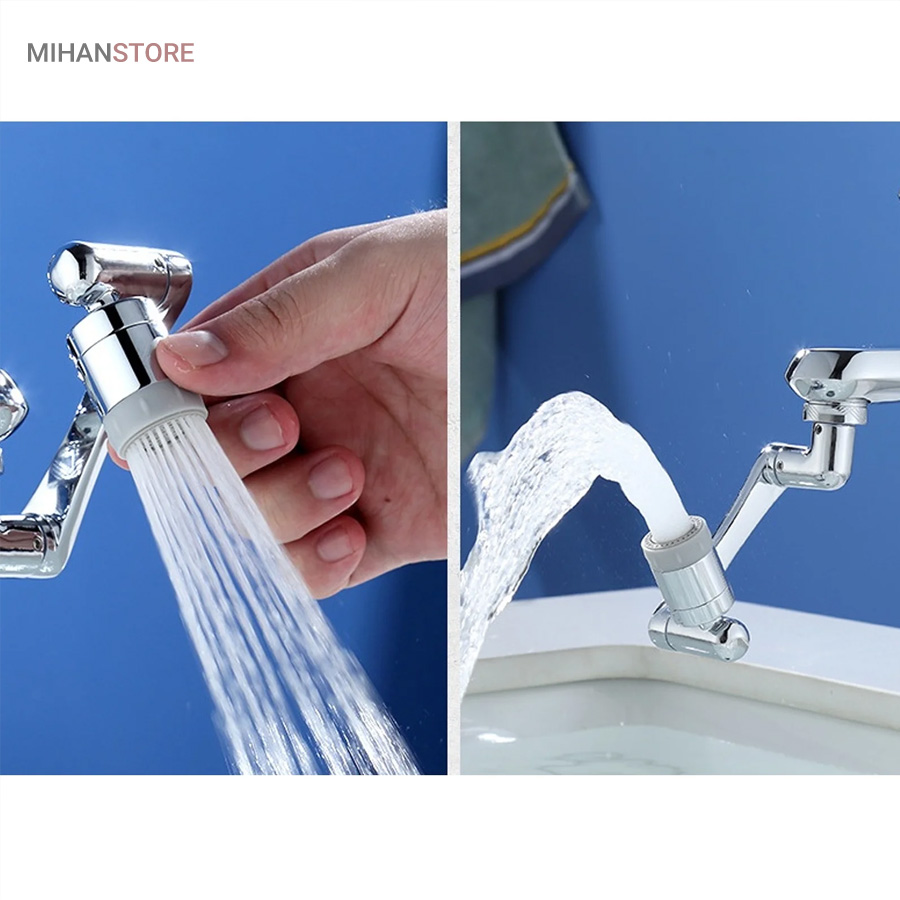 محصولی جدید با طراحی منحصر به فرد که می تواند به آسانی بهره برداری از یک شیر آب معمولی را برای شما به حداکثر برساند . این سرشیر دارای 3 قسمت مشتمل بر سری اتصال به شیر آب ، سری خروجی و بازوی میانی می باشد که هر کدام قابلیت چرخش 360 درجه به صورت تکی و در مجموع ، حرکت در زاویه 1080 درجه را دارند ، بنابراین به ساده ترین شکل ممکن می توانید زاویه خروجی آب را انتخاب و تنظیم نمایید ، این یعنی کمترین محدودیت ممکن برای استفاده از آب و در نهایت صرفه جویی در مصرف . سری اتصال به شیر دارای قطر اصلی 2.2 سانتی متر می باشد که امکان اتصال به بسیاری از شیرهای آب را دارد ، اما در غیر این صورت می توانید از یک مبدل متناسب با نوع شیر آب برای اتصال استفاده کنید . خروجی سر شیر آب چرخشی ، پوششی از جنس ABS مقاوم دارد که مجهز به دو نوع پاشش خروجی آب است ، بنابراین می توانید تنها با مقداری چرخش سری ، پاشش آب را تغییر دهید . وجود بازوی میانی سر شیر 3 محور (1080 درجه) علاوه بر کمک به حرکت در جهات مختلف امکان مقداری فاصله گرفتن خروجی سرشیر تلسکوپی از شیر آب اصلی را فراهم نموده ، به طوری که شما این قابلیت را خواهید داشت تا کمی خروجی را بالاتر و یا پایین تر از حالت عادی تنظیم نمایید . از سر شیر آب چرخان برای شیرهای مختلف (متناسب با ابعاد) روشویی ، سینک و ... می توانید استفاده کنید.