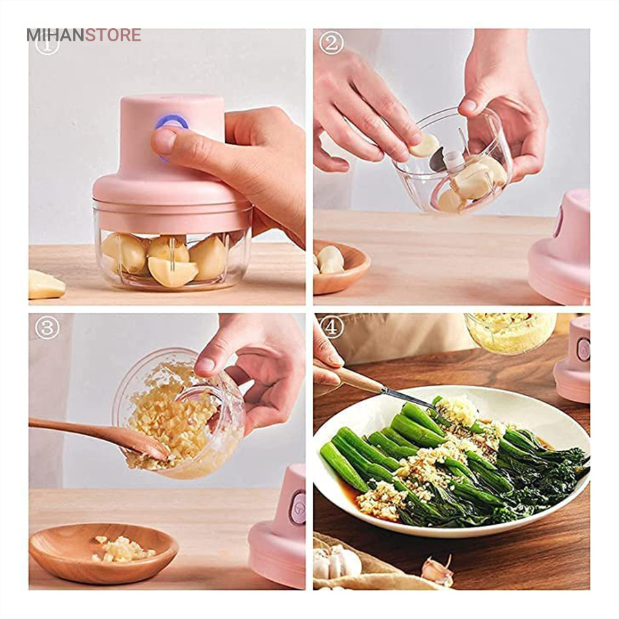 مینی خردکن شارژی یک خردکن 3 تیغه تیز است که به عنوان یک وسیله کاربردی برای خرد و میکس کردن سیر ، زنجبیل ، فلفل ، هویج ، سبزیجات ، پیاز و موارد دیگر بسیار مناسب است. طراحی عملکرد کلید لمسی مینی خردکن شارژی باعث می شود دست شما آزاد باشد تا موقع کار به کارهای دیگر خود برسید.این دستگاه با یک کابل USB و با ۳ ساعت شارژ ، می تواند از عمر طولانی باتری تا ۳۰ روز و استفاده گاهی اوقات لذت ببرید. این خردکن شارژی رو میتونید مسافرت یا کمپینگ هاتون هم همراه ببرید و از دست خرد کردن راحت بشید.این دستگاه ضدآب بوده و آب از محفظه زیرین به بالا و موتور نفوذ نمیکنه  این دستگاه از پلاستیک ABS ساخته شده و بسیار مقاوم بوده و همچنین تیغه ها ضدزنگ بوده.