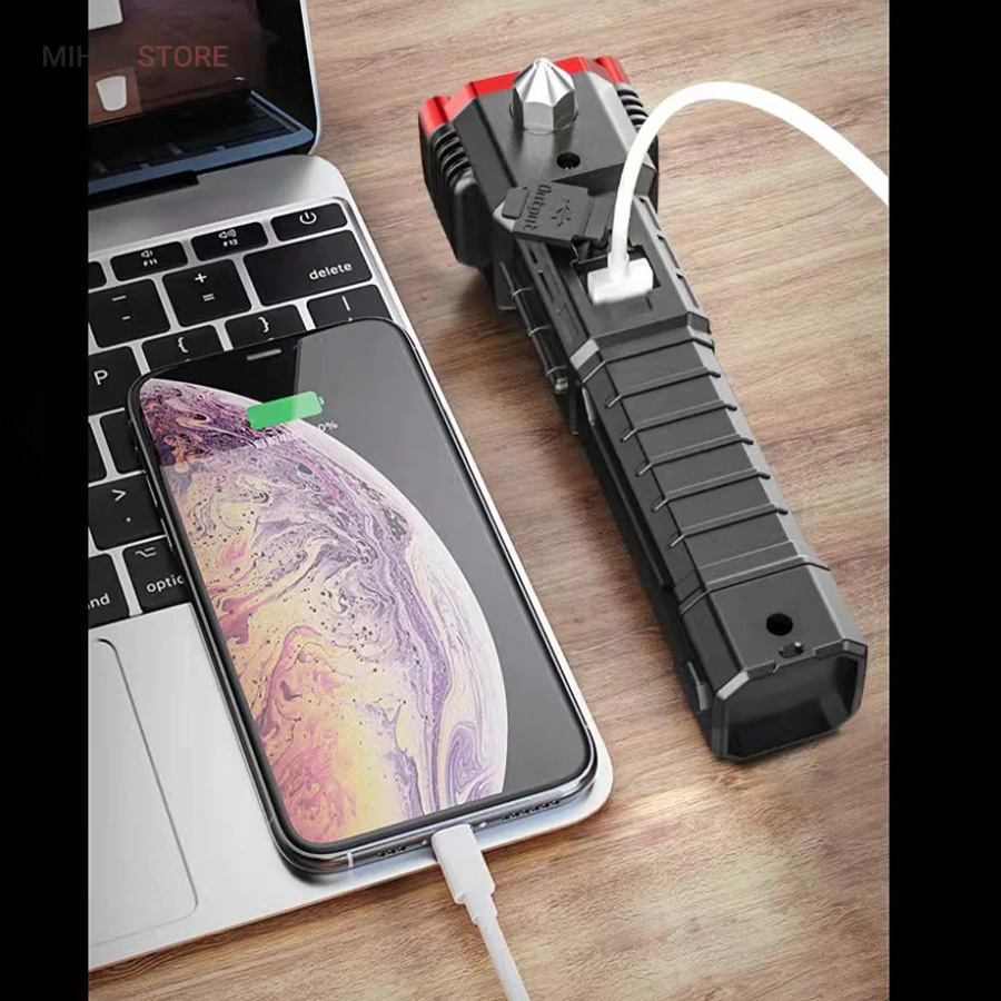 3 حالت نور- دارای چکش اتش نشانی-دارای تیغ مخفی برای بریدن کش و