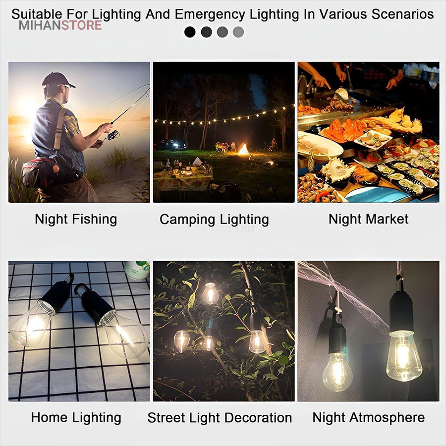 لامپ شارژی کمپینگ فیلامنتی با طراحی ساده و زیبایی که دارد می تواند برای انواع فعالیت ها از جمله کمپینگ، کوهنوردی، ماهیگیری، کار در معدن، کشاورزی و تعمیر ماشین و… مورد استفاده قرار داد. همچنین این محصول از لحاظ حالات نوردهی دارای حالت نوردهی آفتابی بود و قابل شارژ با آداپتور و پاوربانک و درگاه یو اس بی میباشد. این محصول دارای 3 حالت نور دهی کم نور، نور متوسط و پر نور هست که توسط دکمه روی آن قابل تنظیم می باشد.