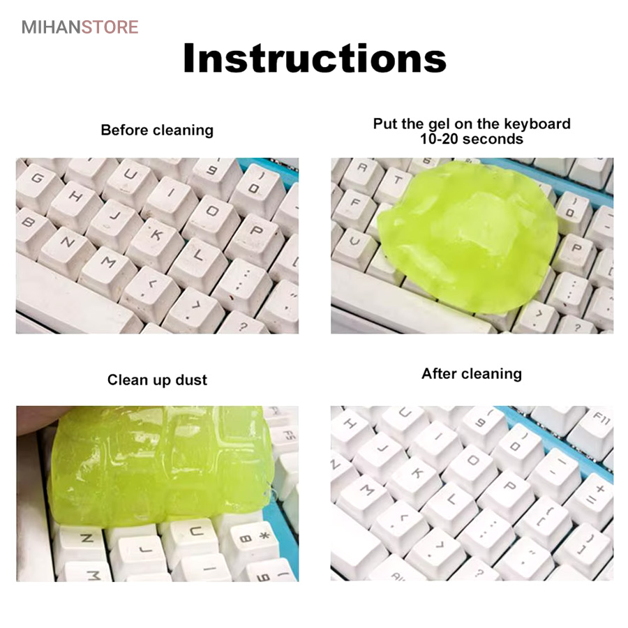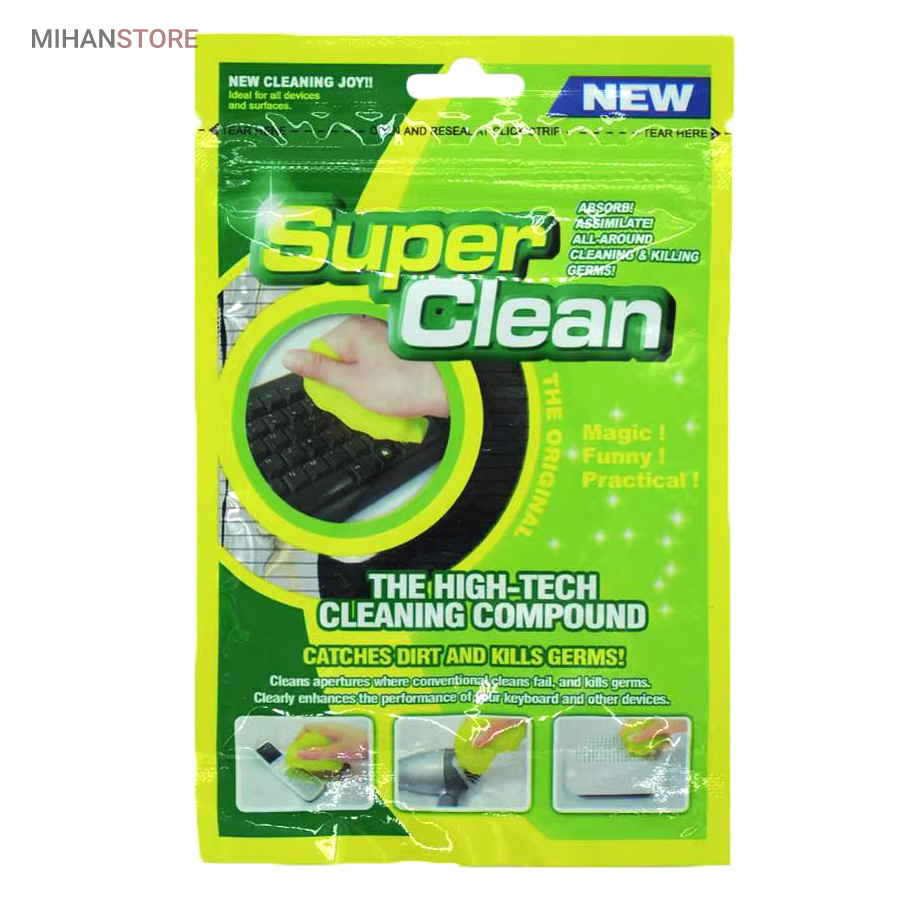 ژل جادویی تمیز کننده  Super Clean می توانید گرد و غبار و کثیفی را که بین کلیدهای صفحه کلید قرار می گیرد و هر مکانی که با اسباب بازی های کلیدی کودکانتان نمی تواند به آن دسترسی پیدا کند را تمیز کنید.ژل جادویی تمیز کننده Super Clean با ساختار جنبشی خود که به راحتی شکل می گیرد، به هر منطقه ای می رسد و آن را تمیز می کند. می توانید بارها از آن استفاده کنید. تنها کاری که باید انجام دهید این است که یک بار روی ناحیه گرد و خاکی و کثیف فشار داده و بکشید. محل کثیف در عرض چند ثانیه تمیز می شود و هیچ باقی مانده یا چسبندگی خمیر ژل روی سطوح اعمال شده وجود ندارد.