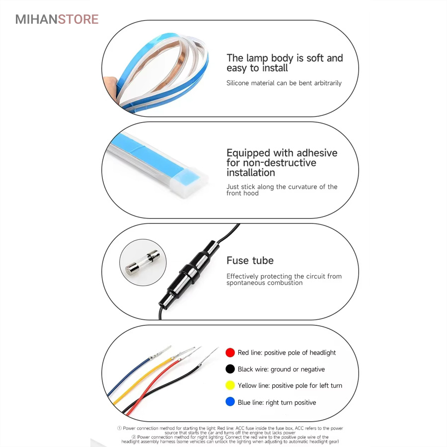 مصرف کم انرژی: به دلیل استفاده از تکنولوژی LED، این نوارها مصرف انرژی کمی دارند و به باتری خودرو فشار نمی‌آورند.