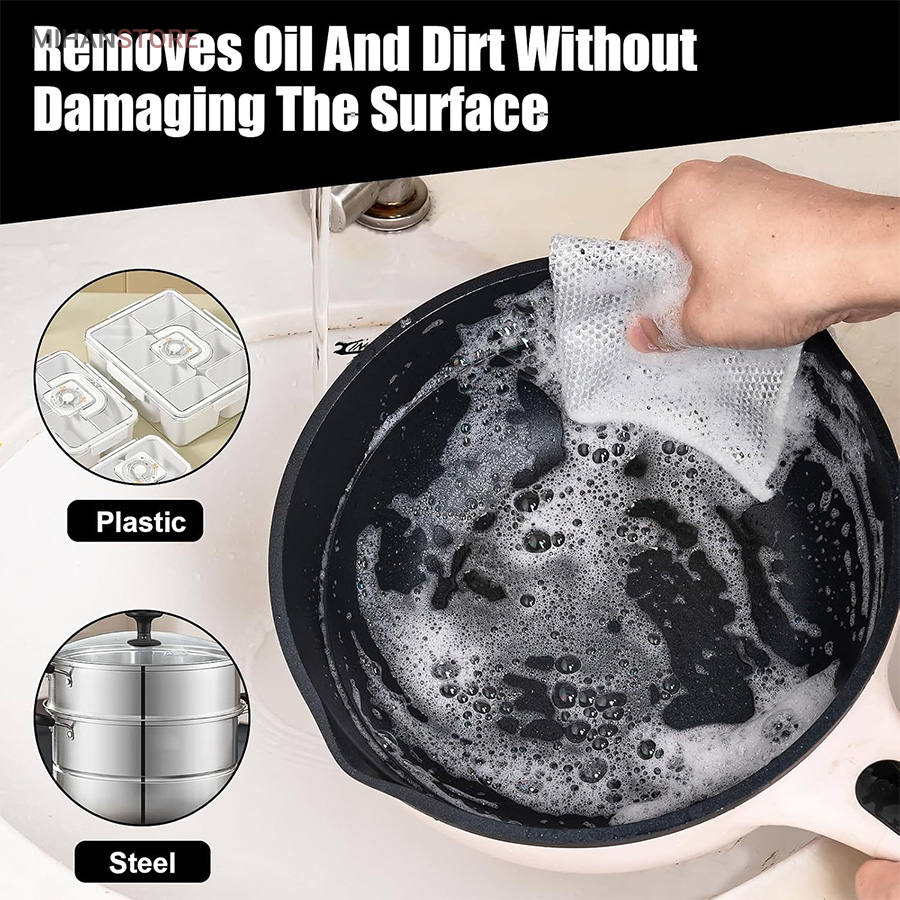 قدرت تمیزکنندگی بالا: این اسکاچ و دستمال توری با قدرت پاککنندگی بالا، به راحتی چربیها، لکههای سخت و آلودگیها را از بین میبرد و نتیجهای تمیز و درخشان به جای میگذارد.