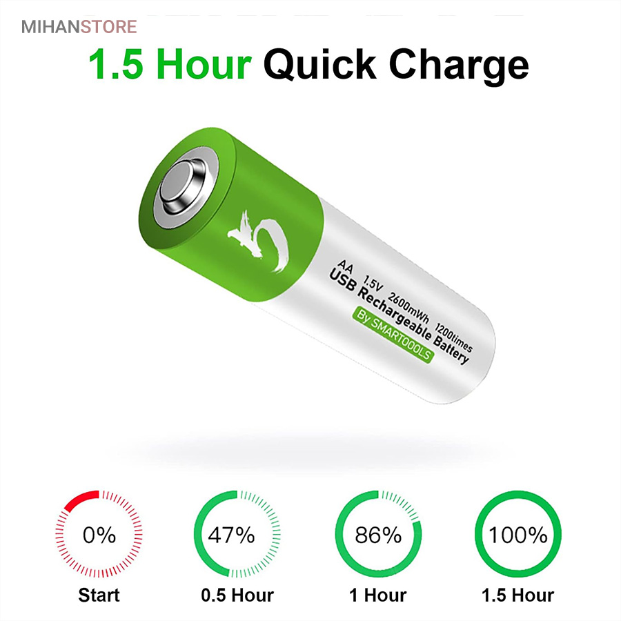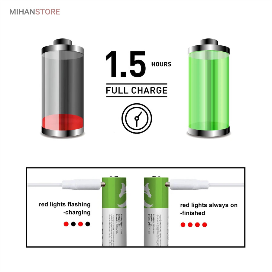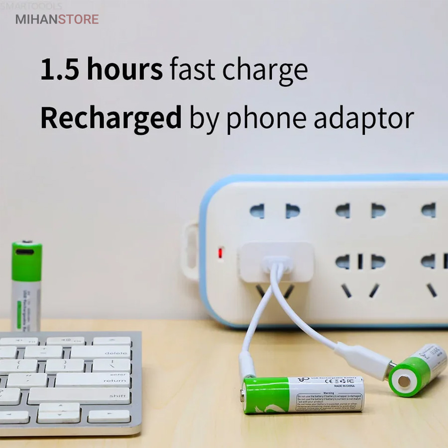 باطری قلمی قابل شارژ همچون یک پاور بانک عمل نموده و به راحتی قابل شارژ می باشند ، کابل شارژ باتری از نوع Type_C بوده و کافی است طرف USB را به دستگاه تامین کننده برق وصل نمایید تا ظرف 1-1.5 ساعت باتری ها شارژ شوند این باتری ها با قابلیت ۱۲۰۰ مرتبه شارژ از طول عمر بلند مدتی برخوردارند . مناسب برای ؛ مسواک های برقی ، ریموت کنترل ، ماوس بیسیم ، ماشین حساب ، گوشی تلفن ، اسباب بازی ها و ... میباشد این باتری ها دارای استانداردهای کیفیت CE & FCC میباشند .