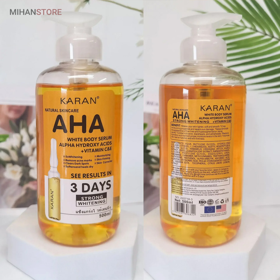 سرم روشن کننده تخصصی بدن حاوی AHA و ویتامین سی محصول تخصصی برای مراقبت از پوست است. سرم روشن کننده بدن aha با ترکیبات موثری همچون آلفا هیدروکسی اسید (AHA)، ویتامین C و ویتامین E طراحی شده است که به لایه‌برداری پوست، روشن‌کنندگی و کاهش تیرگی‌ موضعی کمک می‌کند. سرم روشن کننده aha علاوه بر حذف سلول‌های مرده و جای آکنه، باعث رفع خشکی و افزایش لطافت پوست می‌شود. استفاده از این محصول به‌ویژه برای رفع تیرگی در نواحی حساس بدن مانند صورت، کشاله ران، زانو و آرنج توصیه می‌شود. در واقع، سرم روشن کننده بدن aha با حجم بالا و فرمولاسیون حرفه‌ای گزینه‌ای مقرون‌به‌صرفه برای افرادی است که به دنبال شفافیت و شادابی پوست خود هستند.