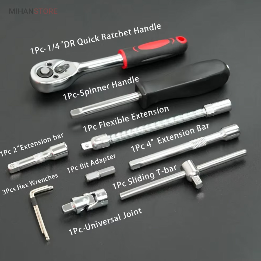 - 1 عدد آچار جغجغه‌ای به طول ۱۹ سانتی‌‎متر با درایو ۱/۴ اینچ