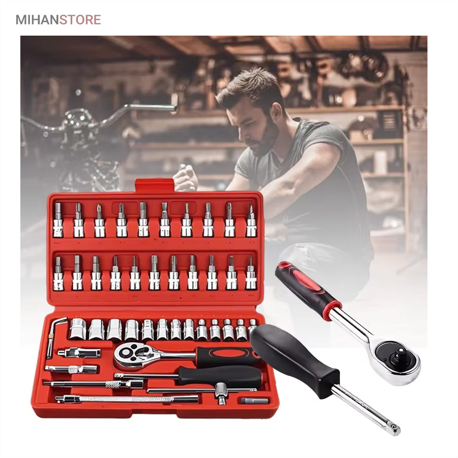 میهن استور - خرید پستی جعبه 46 پارچه آچار و سری بکس و پیچ گوشتی