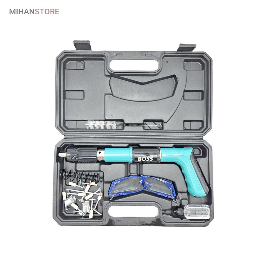 میخکوب دستی چاشنی خور Boss همراه لوازم و کیف ، یک ابزار کاربردی و پرکاربرد برای نجاران، تعمیرکاران، و علاقه‌مندان به صنعت ساختمان است! این محصول با قدرت فوق‌العاده، میخ‌ها را تا عمق 2.7 سانتیمتر در سخت‌ترین مواد فرو می‌کند و با وزن سبک و طراحی ارگونومیک، کارایی شما را به سطح جدیدی می‌رساند!