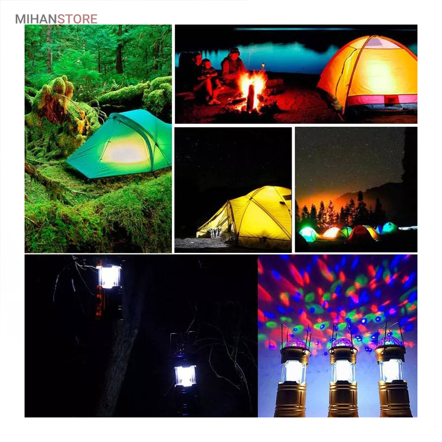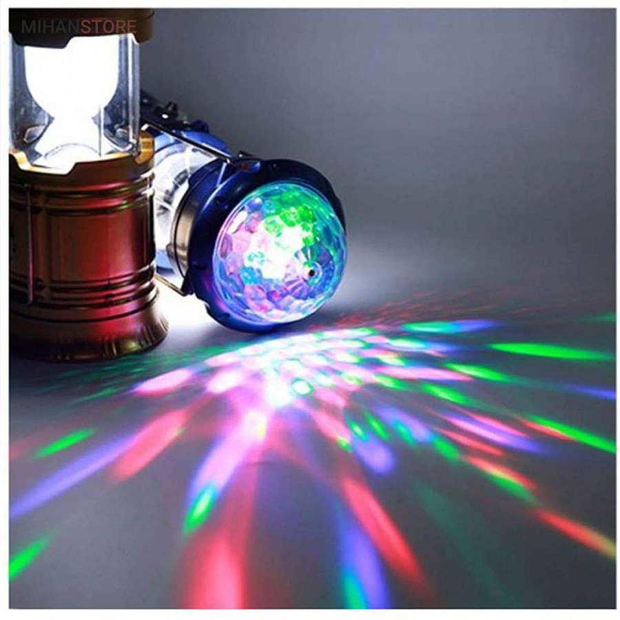 چراغ کمپینگ شارژی رقص نور دار با قابلیت جمع شدن و دو مدل نور دهی که علاوه بر روشن شدن محیط امکان پرتاب نور به نقاط دور تر را فراهم میکند .بر روی این فانوس لامپ های رنگی وجود دارد که با حالت چرخشی رقص نور جذابی را ایجاد میکند .مناسب برای زمان تاریکی و برای مهمانی های خانوادگی تا از رقص نور آن استفاده کنید .