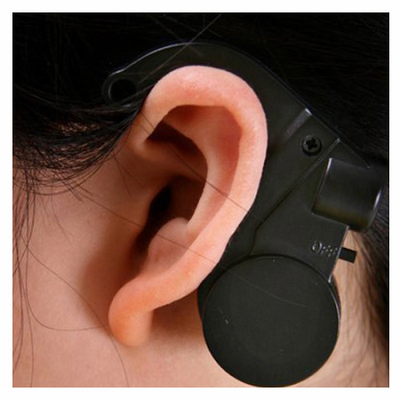 دکمه پاور را روشن کرده و همانطور که در تصویر ملاحظه میکنید مثل هندزفری به پشت گوش وصل کنید.