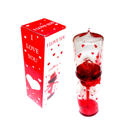 با در دست گرفتن این دماسنج زیبا در دستانتان مایع درون آن برحسب حرارت دستانتان شروع به حرکت خواهد کرد و با ورود به دریچه قلب بالایی هرچه آن را پرتر کند،شما از آزمون عشق سربلند تر بیرون آمده اید! در موارد فوق العاده مایع قرمز رنگ از درون قلب بالایی به سمت بیرون فواره خواهد زد و اینجاست که عشقتان باید قدر شما را بداند!