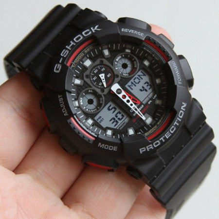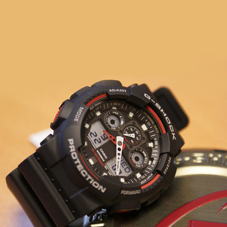 ساعت های جی شاک برای استفاده افراد پر تحرک طراحی شده است. ساعت هایی که می توانند در شرایط غیر عادی هم به راحتی کار کنند و مشکلی نداشته باشند. ساعت کاسیو جی شاک GA-100 یکی از شیک ترین و پر طرفدارترین ساعت های، سری جی شاک می باشد. این ساعت 2 زمانه بوده و دارای امکاناتی از قبیل تاریخ شمار، کرنومتر، چراغ شب نمای 7 رنگ می باشد و هم چنین تا 80% ضد آب بوده و در جعبه اورجینال فلزی و شکیل عرضه شده است.