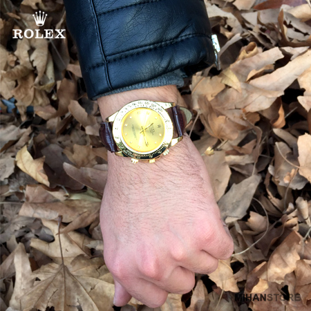 ساعت مچی رولکس WINNER یکی از جدیدترین مدل های عرضه شده کمپانی معتبر ROLEX می باشد. این ساعت دارای بند چرم بسیار با کیفیت و صفحه شیشه ای ضدخش می باشد که در 2 رنگ بند مشکی و قهوه ای و همچنین صفحه نقره ای و طلایی عرضه شده است. این ساعت دارای تقویم روز شمار می باشد. هم اکنون می توانید ساعت مچی  ROLEX را همراه با جعبه شکیل و  6 ماه گارانتی تعویض با قیمت استثنایی از فروشگاه میهن استور سفارش دهید.