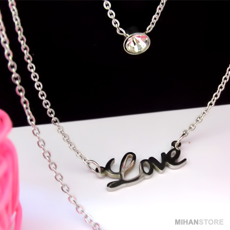 دارای گردنبند سه زنجیره با آویز های نگین، Love و کلید