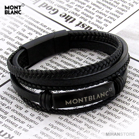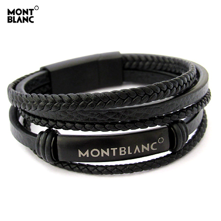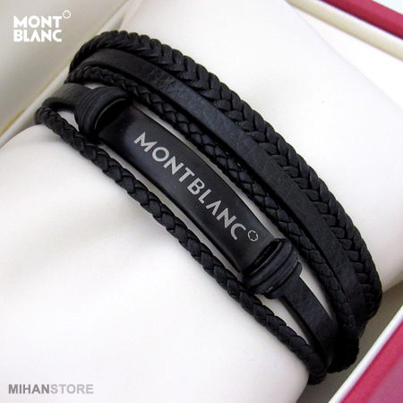 دستبند چرم طرح Montblanc نمونه‌ای از زیورهای ظریف و در عین حال پرطرفدار از جانب آقایان و خانم ها است که با اکثر رنگ‌های لباس همخوانی داشته و در عین حال متفاوت دیده می‌شود. این دستبند فوق العاده شیک از پنج لایه چرم به صورت ساده و بافته شده و نماد زیبای برند Montblanc با رنگ های لوگو مشکی و طلایی عرضه شده است.