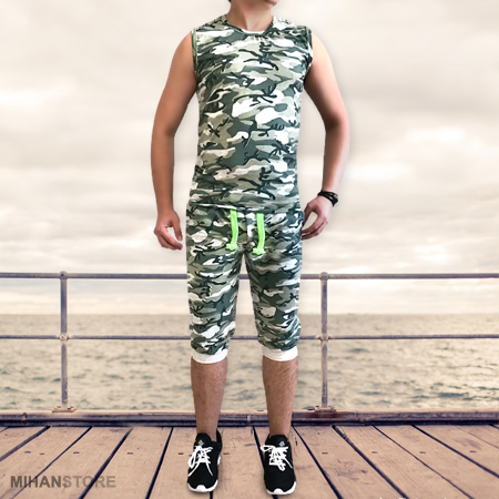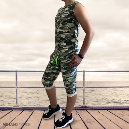 ست رکابی و شلوارک ارتشی پارچه نرم و ظاهری شکیل دارد. شلوارک این ست دارای کمرکشی می باشد که باعث میشود برای اکثر سایزها قابل استفاده باشد. آستین حلقه ای این ست نیز دارای قد نسبتا بلند می باشد.