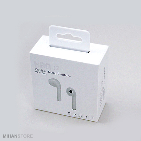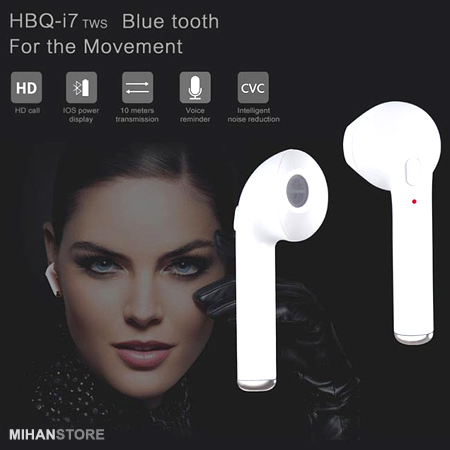 هندزفری طرح اپل مدل HBQ I7 یک هندزفری ظریف و بسیار زیباست که داخل گوش قرار گرفته و به صورت تکی عرضه می گردد. این دستگاه بی سیم از طریق بلوتوث نسخه 4 به دستگاه هوشمند شما وصل می شود و یکی از نقاط قوت آن این است که می تواند به طور همزمان به دو دستگاه وصل شود. با این ایرفون بی سیم میتوانید به تماس های تلفنی خود پاسخ داده و به راحتی موزیک پخش نمایید.از دیگر خصوصیات آن می توان به سیستم کاهش نویز، میکروفن  داخلی، وزن کم و زیبایی اشاره کرد.باتری لیتیوم پلیمری آن در حدود 80 دقیقه شارژ کامل شده و امکان مکالمه و پخش موزیک را برای شما فراهم می کند.