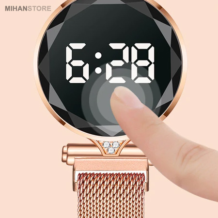 ساعت های  مچی صفحه لمسی نگین دار Luxury Lady مخصوص بانوان از جدید ترین ساعت های سال بوده و در این مدت کوتاه استقبال بی نظیری از این محصول در سراسر دنیا شده است. ساعت مچی صفحه لمسی نگین دار Luxury Lady  از یک رابط اهنربایی در بند ساعت بهره میبرد که باعث می شود بندها را به یکدیگر متصل کنند و ثابت نگه دارد. در واقع این رابط به جای قفل های سگکی قدیمی عمل میکند و مانع باز شدن ساعت می شود . استحکام قفل های مگنتی به قدری زیاد است که به راحتی از دست جدا نمی شوند و امکان باز شدن خود به خودی قفل ها تقریبا محال است. قفل ساعت مگنتی (آهنربایی) هست که باعث میشه برای هر سایز مچی مناسب باشه و نیاز به کوتاه یا بلند کردن بند توسط ساعت ساز نداشته باشد، جنس صفحه این ساعت تاچ مگنتی LED  از شیشه صیقل داده شده بوده و همانطور که قابل مشاهده است در اطراف به صورت منشور مانند و مثلثی در امده و از این رو زیبایی خاصی را هنگام بازتاب نور ایجاد می کند. ساعتها قابلیت لمسی دارند. به طوری که با لمس صفحه led ساعت، ساعت و همچنین تاریخ و .. با اعداد قرمز نمایش داده می شود. قاب ساعت تاچ مگنتی نیز همانند بند ها از جنس فلز هست و با نگین های براق زیبایی ساعت را دو چندان کردند. این محصول دارای جعبه طرح چوب می باشد و همچنین در رنگبندی متفاوت عرضه شده است که شما هنگام ثبت سفارش در قسمت پیام سبد خرید می توانید رنگ مورد نظر را ذکر کنید.