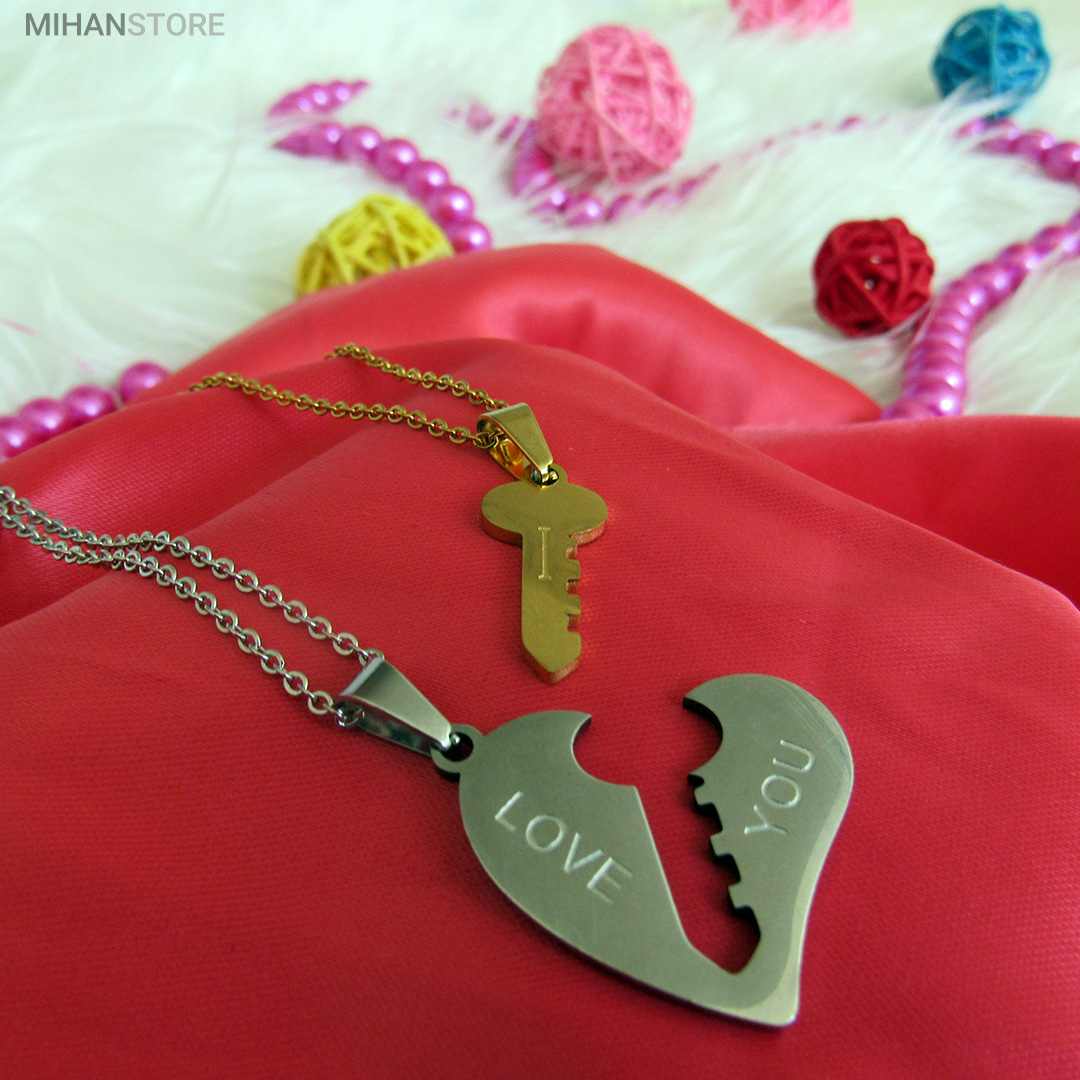 ست گردنبند عاشقانه قلب و کلید