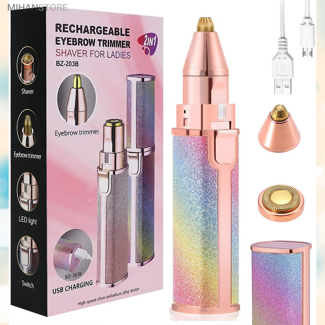 دستگاه اصلاح صورت و بدن ماتیکی دو کاره شارژی رنگی یک محصول فوق العاده با کیفیت و با کارایی های بالا می باشد که توسط آن که اندازه بسیار مناسبی شبیه یک رژ لب معمولی دارد می توانید هم کار اصلاح موهای زائد نقاط حساس صورت و بدن را بدون درد انجام دهید و هم توسط سری موزن آن با دقت بسیار بالا ، ابروها و موهای داخل بینی و روی گوش ها را کاملا تمیز نمایید. در واقع شما با خرید یک محصول چند محصول پرکاربرد را همیشه همراه خود خواهید داشت و چی از این بهتر؟ رنگ فوق العاده زیبای آن باعث می شود در همان نگاه اول عاشقش شوید و از داشتن آن نهایت لذت را خواهید داشت. شارژی بودن و عدم نیاز به تهیه و تعویض باتری از دیگر نکات مثبت این محصول می باشد که توسط کابل های موبایل های معمولی اندرویدی نیز می توانید در همه جا آن را شارژ نموده و استفاده نمایید.این دستگاه شیور زنانه دوکاره دارای دو سری مختلف می باشد که سری اول همان سری معروف دستگاه موزن ماتیکی می باشد که برای از بین بردن موهای زائد صورت و بدن استفاده می شود و سری دوم آن ، موزن بوده و برای اصلاح ابرو و از بردن موهای زائد ابرو و بینی و گوش قابل استفاده می باشد ، سری ها به راحتی تعویض شده و بعد از جدا کردن از دستگاه می توانید آن ها را با آب شستشو دهید. برای تعویض سری ها کافی است کمی آن ها را چرخانده و به سمت بیرون بکشید تا جدا شوند و برای جا انداختن دوباره آن ها نیز کافی است سری را در جای مشخص قرار داده و کمی بچرخانید، بسیار ساده است. این محصول دارای کیفیت درجه یک می باشد و برای هدیه دادن بسیار بسیار گزینه مناسب و ایده آلی است زیرا هر خانمی به دلیل رنگ خیره کننده اش از دیدن آن شگفت زده می شود و در عین حال بسیار کارآمد و مفید می باشد و آن را تبدیل به هدیه ای دوست داشتنی و به یاد ماندنی تبدیل می کند که همیشه آن را در کیف خود به همراه خواهد داشت. برای شارژ کردن این محصول کافی است توسط کابل شارژ درون جعبه و یا هر کابل شارژ میکرو یو اس بی موبایل های اندرویدی آن را توسط شارژرهای موبایل یا یو اس بی کامپیوتر و یا حتی پاوربانک شارژ نمایید و بعد از هر بار فول شارژ شدن می توانید برای مدت زیادی از آن استفاده نمایید. در این محصول یک عدد چراغ نیز وجود دارد که باعث می شود خیلی بهتر بتوانید موهای زائد را مشاده نموده و از شر آنها خلاص شوید این چراغ به اندازه کافی پر نور می باشد.
