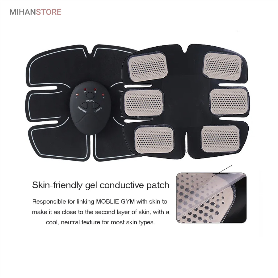 دستگاه تناسب اندام و ماساژور EMS یا همان دستگاه سیکس پک یکی از مدرن ترین تجهیزات ورزشی به شمار میرود. دستگاه ماساژور شکمی EMS یک دستگاه عضله ساز اتوماتیک است که با استفاده از پالس های الکتریکی عضلات شما را تحریک می‌کند. عملکرد اصلی ای ام اس خانگی موبابل جیم، کمک به ساخت عضلات و چربیسوزی به عنوان تکمیل ورزش و رژیم مناسب غذایی می‌باشد که این موارد را برای ورزشکاران تسهیل می‌نماید. این دستگاه علاوه بر اینکه به عنوان ماساژور قابل استفاده است، شبیه ساز تمرینات باشگاهی نیز محسوب می شود. این دستگاه تا حدودی هم برای چربی سوزی به کار می رود. پد این دستگاه در صورت استفاده مناسب و بهداشتی، بالغ بر 200 مرتبه قابلیت استفاده دارند. دستگاه شبیه ساز تمرین خانگی، به وسیله باتری قلمی کار میکند. از نکات مثبت دیگر این دستگاه می‌توان به سبکی و قابل حمل بودن آن اشاره کرد که شما می‌توانید به کمک EMS خانگی، در سفر نیز از عضلات خود کار بکشید و آن‌ها را به رشد وادار کنید. همچنین هنگام استراحت و تماشای تلویزیون نیز می‌توانید از مزایای این دستگاه بهره مند شده و علاوه بر نکات مثبت ذکر شده، از آن به منظور بهبود ریکاوری بدن خود نیز استفاده کنید.