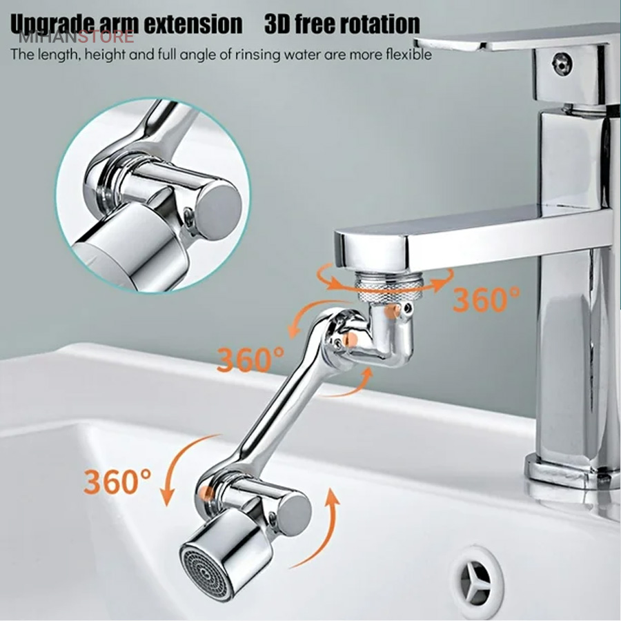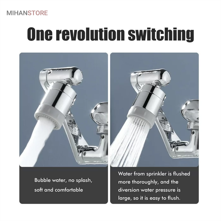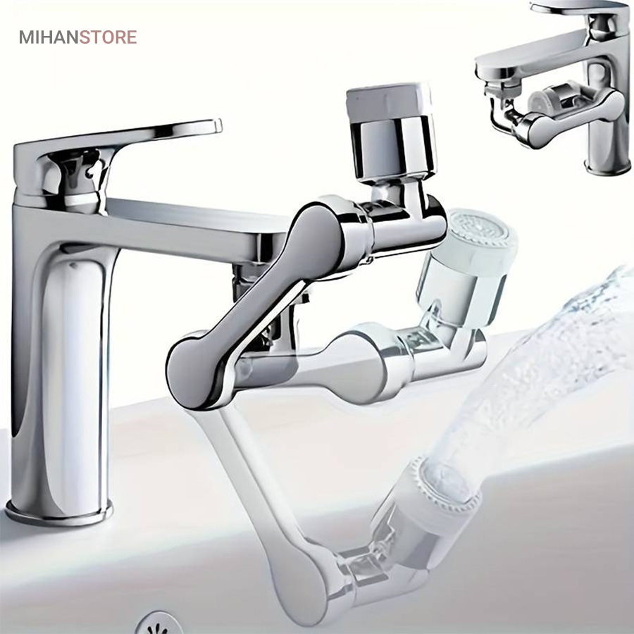 محصولی جدید با طراحی منحصر به فرد که می تواند به آسانی بهره برداری از یک شیر آب معمولی را برای شما به حداکثر برساند . این سرشیر دارای 3 قسمت مشتمل بر سری اتصال به شیر آب ، سری خروجی و بازوی میانی می باشد که هر کدام قابلیت چرخش 360 درجه به صورت تکی و در مجموع ، حرکت در زاویه 1080 درجه را دارند ، بنابراین به ساده ترین شکل ممکن می توانید زاویه خروجی آب را انتخاب و تنظیم نمایید ، این یعنی کمترین محدودیت ممکن برای استفاده از آب و در نهایت صرفه جویی در مصرف . سری اتصال به شیر دارای قطر اصلی 2.2 سانتی متر می باشد که امکان اتصال به بسیاری از شیرهای آب را دارد ، اما در غیر این صورت می توانید از یک مبدل متناسب با نوع شیر آب برای اتصال استفاده کنید . خروجی سر شیر آب چرخشی ، پوششی از جنس ABS مقاوم دارد که مجهز به دو نوع پاشش خروجی آب است ، بنابراین می توانید تنها با مقداری چرخش سری ، پاشش آب را تغییر دهید . وجود بازوی میانی سر شیر 3 محور (1080 درجه) علاوه بر کمک به حرکت در جهات مختلف امکان مقداری فاصله گرفتن خروجی سرشیر تلسکوپی از شیر آب اصلی را فراهم نموده ، به طوری که شما این قابلیت را خواهید داشت تا کمی خروجی را بالاتر و یا پایین تر از حالت عادی تنظیم نمایید . از سر شیر آب چرخان برای شیرهای مختلف (متناسب با ابعاد) روشویی ، سینک و ... می توانید استفاده کنید.