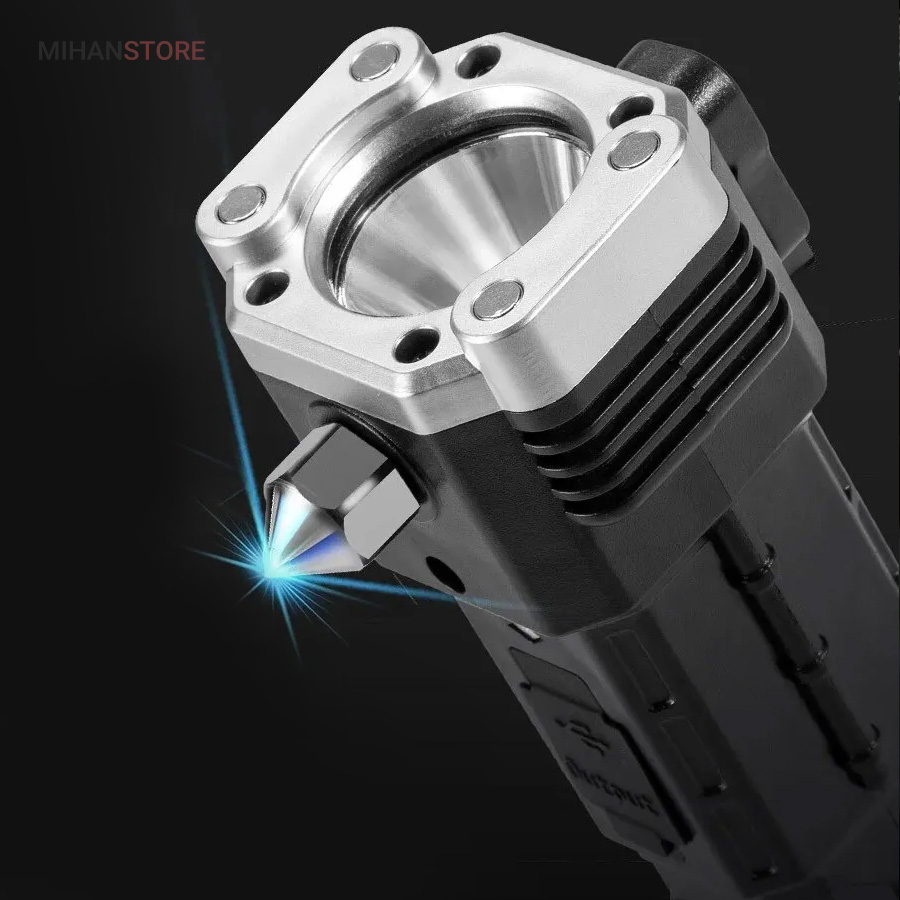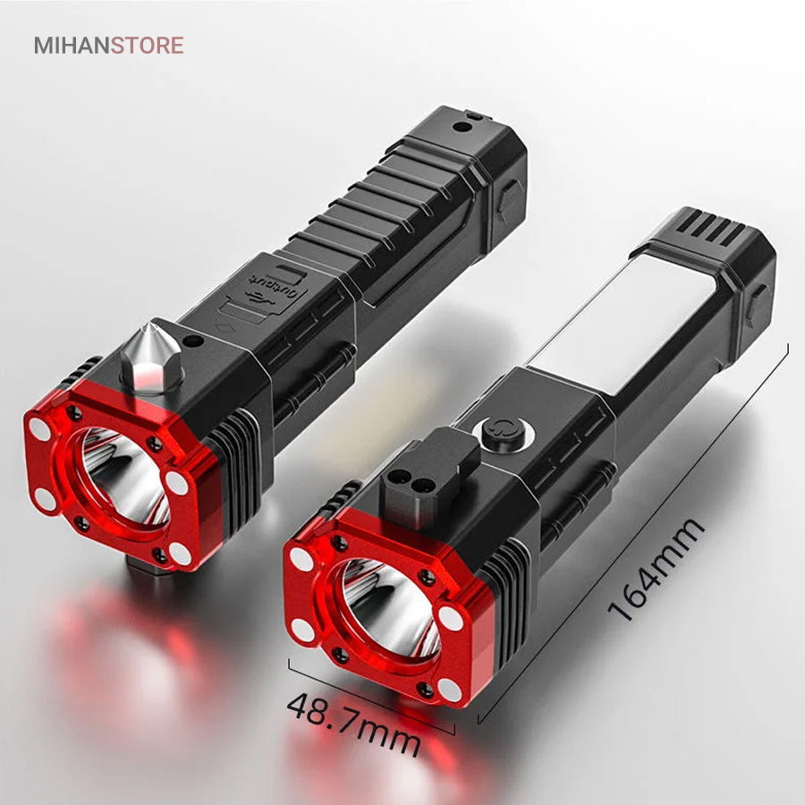 3 حالت نور- دارای چکش اتش نشانی-دارای تیغ مخفی برای بریدن کش و