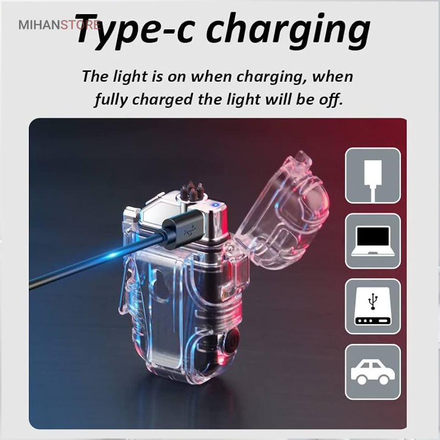 این مدل فندک بدون شعله است و نیازی به سوخت (گاز) ندارد. به همین خاطر استفاده از آن بسیار راحت است و کاربرد بیشتری نسبت به فندک معمولی دارد. در واقع منشا تولید حرارت در فندک پلاسما شبیه به قوس الکترونیک است؛ با حرارت پایین تر، که توانایی بالاتری در روشن کردن دارد و در هنگام وزش باد نیز قابل استفاده است و خاموش نمیشود. فندک الکتریکی (شارژی) چراغ قوه دار هدیه ای ارزنده و زیبا برای افرادی که دنبال محصولات لاکچری هستند. ویژگی منحصر به فرد این فندک ضدآب بودن آن است. یک پوشش پلاستیک محکم شفاف روی کل بدنه محصول قرار گرفته که نه تنها زیر باران، بلکه داخل آب (استخر، دریا و …) نیز قابل استفاده است. شما با خرید این محصول جذاب نه تنها صاحب یک فندک کاربردی خواهید شد بلکه یک چراغ قوه کوچک جیبی را نیز از آن خود خواهید کرد! روی بدنه این فندک یک چراغ COB سه حالته تعبیه شده که با دکمه پاور بغل آن روشن و خاموش میشود. (حالت نور کم، نور چشمک زن و نور زیاد)این فندک پلاسما یک فندک ضد آب و ضد باد است که می توانید در مواقع اضطراری به آن اعتماد کنید. روزهایی که باید نگران خشک نگه داشتن کبریت ها یا خاموش شدن شعله فندک های معمولی باشید، گذشته است. فندک الکتریکی (شارژی) چراغ قوه دار می تواند به طور مداوم قوس پلاسمای آتش را حفظ کند، حتی از حین بادهای 80 مایل در ساعت. با یک قاب بیرونی بادوام، مهر و موم حلقه فلزی و یک قفل، دیگر نگران ورود آب و خراب شدن این فندک قوس الکترونیک نخواهید بود. صرف نظر از اینکه از آن برای راهاندازی آتش در حیاط خلوت، کمپینگ یا چیزهای ضروری تر مانند شرایط بقا یا اضطراری استفاده می کنید، یک فندک قابل اعتماد خواهید داشت که می تواند در حال حرکت نیز شارژ شود.