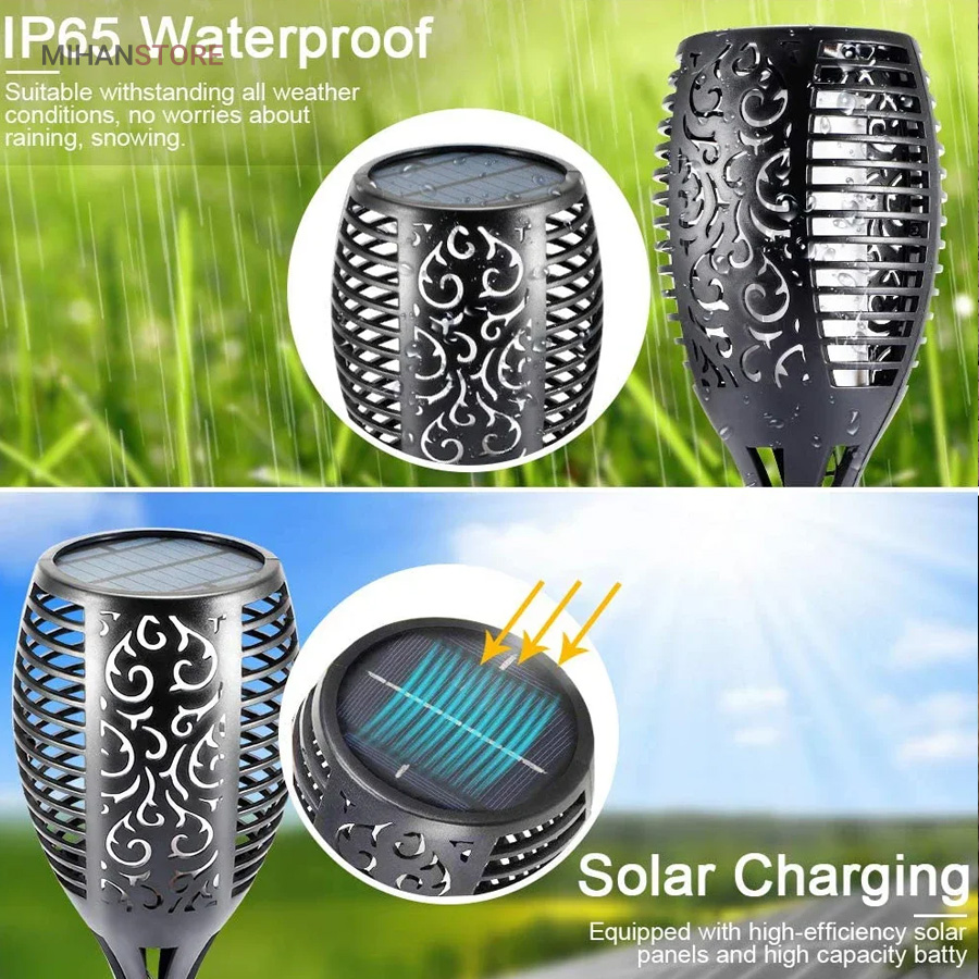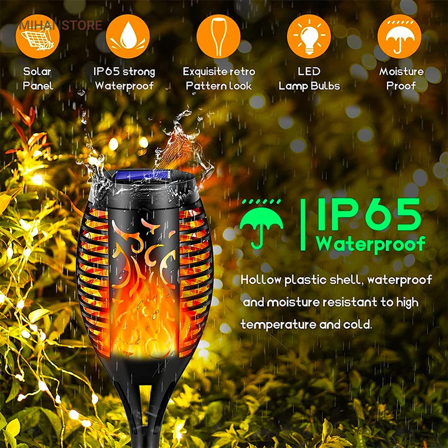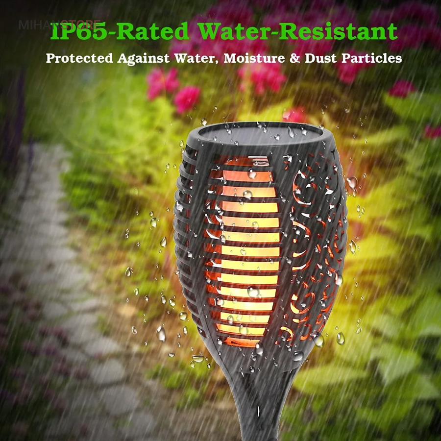 قسمت بیرونی این چراغ باغی خورشیدی مدل مشعل از مواد ABS با کیفیت بالا و ارتقا یافته ساخته شده است که طول عمر و عملکرد با کیفیت بالا، بادوام و ضد آب IP65 را در فضای باز تضمین می کند. این چراغ ها می توانند در تمام شرایط آب و هوایی از جمله باران، برف و یخبندان مقاومت کنند و برای فعالیت در فضای باز مناسب هستند.