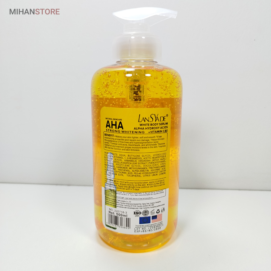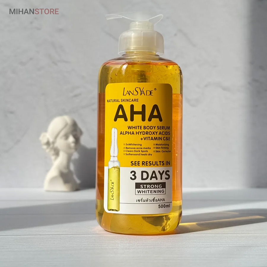 سرم روشن کننده تخصصی بدن حاوی AHA و ویتامین سی محصول تخصصی برای مراقبت از پوست است. سرم روشن کننده بدن aha با ترکیبات موثری همچون آلفا هیدروکسی اسید (AHA)، ویتامین C و ویتامین E طراحی شده است که به لایه‌برداری پوست، روشن‌کنندگی و کاهش تیرگی‌ موضعی کمک می‌کند. سرم روشن کننده aha علاوه بر حذف سلول‌های مرده و جای آکنه، باعث رفع خشکی و افزایش لطافت پوست می‌شود. استفاده از این محصول به‌ویژه برای رفع تیرگی در نواحی حساس بدن مانند صورت، کشاله ران، زانو و آرنج توصیه می‌شود. در واقع، سرم روشن کننده بدن aha با حجم بالا و فرمولاسیون حرفه‌ای گزینه‌ای مقرون‌به‌صرفه برای افرادی است که به دنبال شفافیت و شادابی پوست خود هستند.