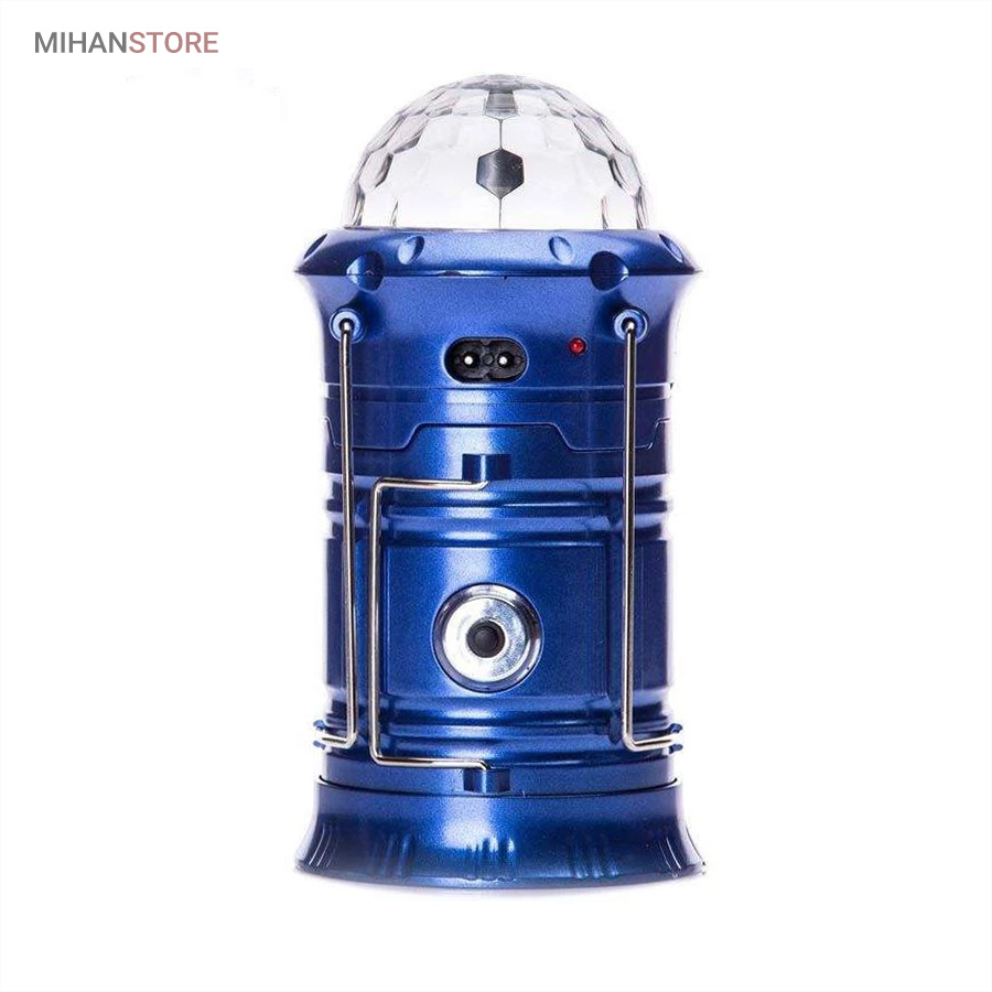 چراغ کمپینگ شارژی رقص نور دار با قابلیت جمع شدن و دو مدل نور دهی که علاوه بر روشن شدن محیط امکان پرتاب نور به نقاط دور تر را فراهم میکند .بر روی این فانوس لامپ های رنگی وجود دارد که با حالت چرخشی رقص نور جذابی را ایجاد میکند .مناسب برای زمان تاریکی و برای مهمانی های خانوادگی تا از رقص نور آن استفاده کنید .