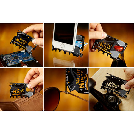 آچار همه کاره نینجا والت و یا همان کارت 18 کاره نینجا والت محصول جدید و بی نظیری می باشد که با طراحی بی نظیر خود حیرت همگان را برانگیخته است. با این آچار كه در سايز يک كارت عابر بانک مي باشد می توانید هر چیزی که می خواهید را به راحتی هر چه تمام تر باز کنید. از سر كنسروجات گرفته تا مهره های درشت و یا خیلی ریز. با اين محصول مي توانيد سر نوشابه را با يک چشم به هم زدن باز كنيد. کارت نینجا والت بهترین وسیله برای تمام افراد به خصوص تعمیر کاران می باشد، با این وسیله دیگر شما نیاز به حمل و نگهداری آچار های سنگین و گران قیمت ندارید.
