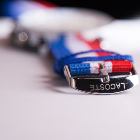 الگو برداری این ساعت از تسمه ی مشهور ناتو می باشد که با ترکیب خطوط رنگ ها و ادغام آن ها با یکدیگر بندی زیبا و شیک ارائه کرده است. برای اولین بار تسمه ناتو در نیروی دریایی بریتانیا استفاده شد که دلیل اصلی تولید و استفاده از آن زنگ نزدن بند ساعت برای آن دسته از غواصانی بود که مدام در حال شنا کردن بوده و به گذر زمان توجه خاصی داشته اند، از این رو برای جلوگیری از زنگ زدن بند ساعت ها و همچنین داشتن ظاهری انعطاف پذیر که به آن ها کمک کند از تسمه ی ناتو استفاده میکردند. بعد از مدتی برند لاگوست نیز با الهام از آنان شروع به تولید گسترده ی ساعت ها با چنین بندهایی کرد.