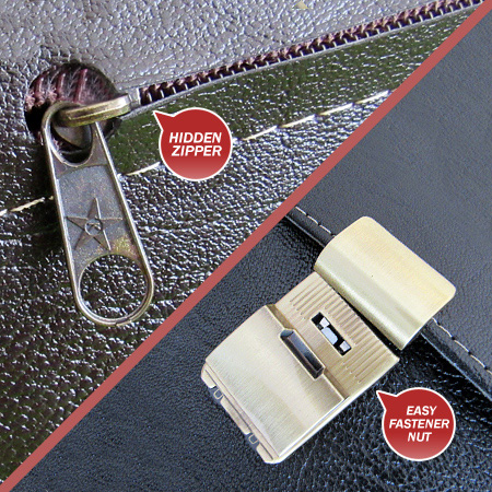 خصوصیت دیگر این کیف که باعث ارزش بیشتر آن می‌شود، جنس کیف است که از چرم مصنوعی بسیار مرغوب در ساخت آن استفاده شده است. از دیگر خصوصیات این کیف می‌توان به داشتن بند حلقه ای دستی اشاره کرد که مخصوص نگهداری کیف با مچ دست می باشد. از نقاط قوت این کیف می‌‎توان به داشتن فضاهای متعدد تفکیک شده در عین کوچک و جمع و جور بودن آن اشاره کرد که از پنج محفظه داخلی و یک محفظه خارجی برخوردار است. همچنین درب اصلی این کیف دارای قفل رمز دار می باشد.