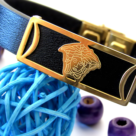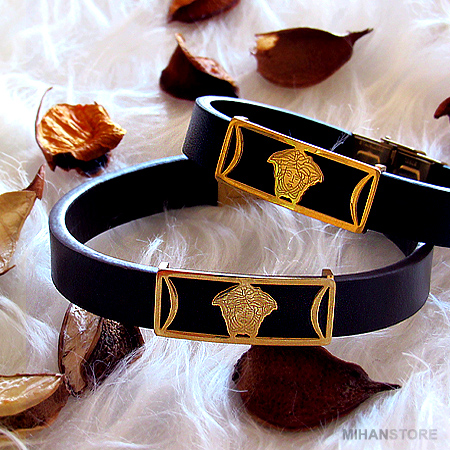دستبند چرمی طرح ورساچه با دو رنگ قهوهای و مشکی و پلاک نازک طلایی ورساچه نمونهای از زیورهای ساده و در عین حال پرطرفدار از جانب آقایان و خانوم ها است که با اکثر رنگهای لباس همخوانی داشته و در عین حال متفاوت دیده میشود. این دستبندها مناسب ترین هدیه برای جوانان شیک پوش است.