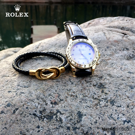 ساعت مچی رولکس WINNER یکی از جدیدترین مدل های عرضه شده کمپانی معتبر ROLEX می باشد. این ساعت دارای بند چرم بسیار با کیفیت و صفحه شیشه ای ضدخش می باشد که در 2 رنگ بند مشکی و قهوه ای و همچنین صفحه نقره ای و طلایی عرضه شده است. این ساعت دارای تقویم روز شمار می باشد. هم اکنون می توانید ساعت مچی  ROLEX را همراه با جعبه شکیل و  6 ماه گارانتی تعویض با قیمت استثنایی از فروشگاه میهن استور سفارش دهید.